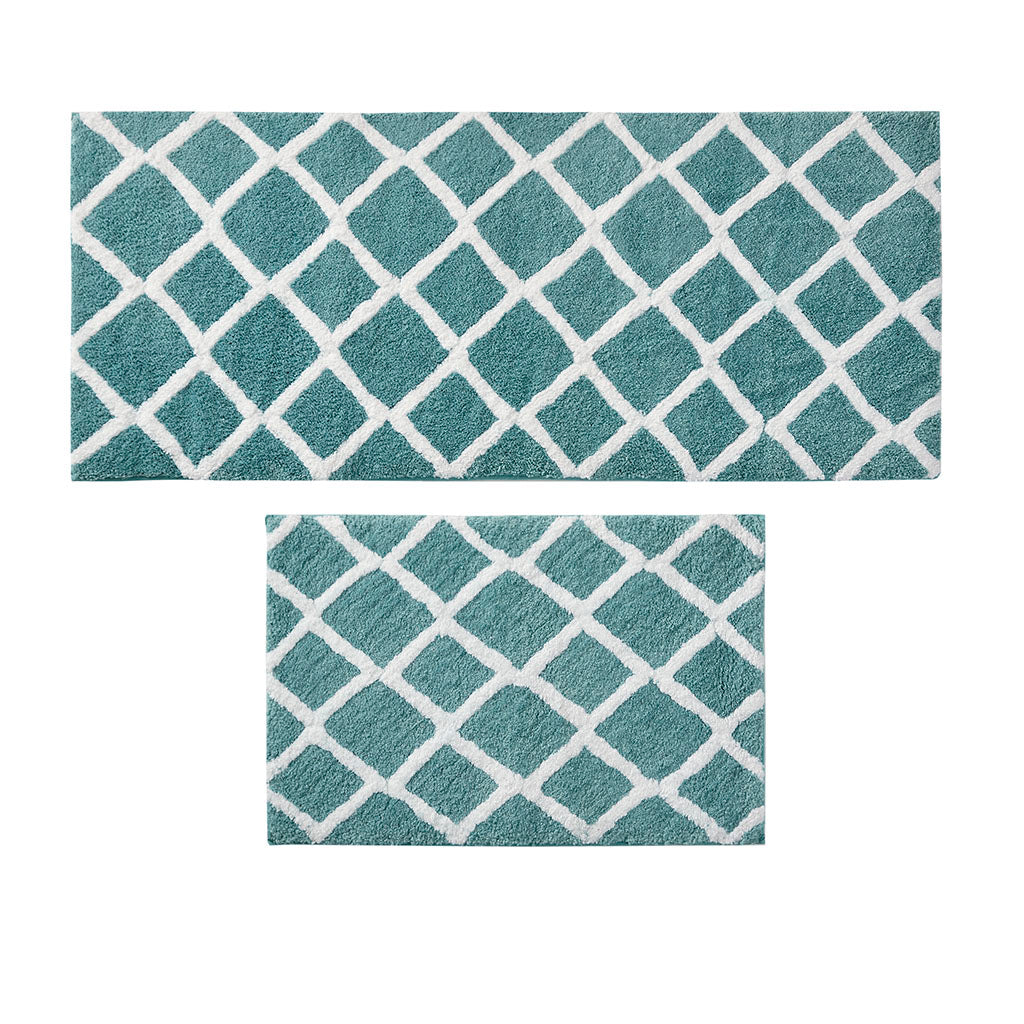 Reversible High Pile Tufted Microfiber Bath Rug Aqua Microfiber