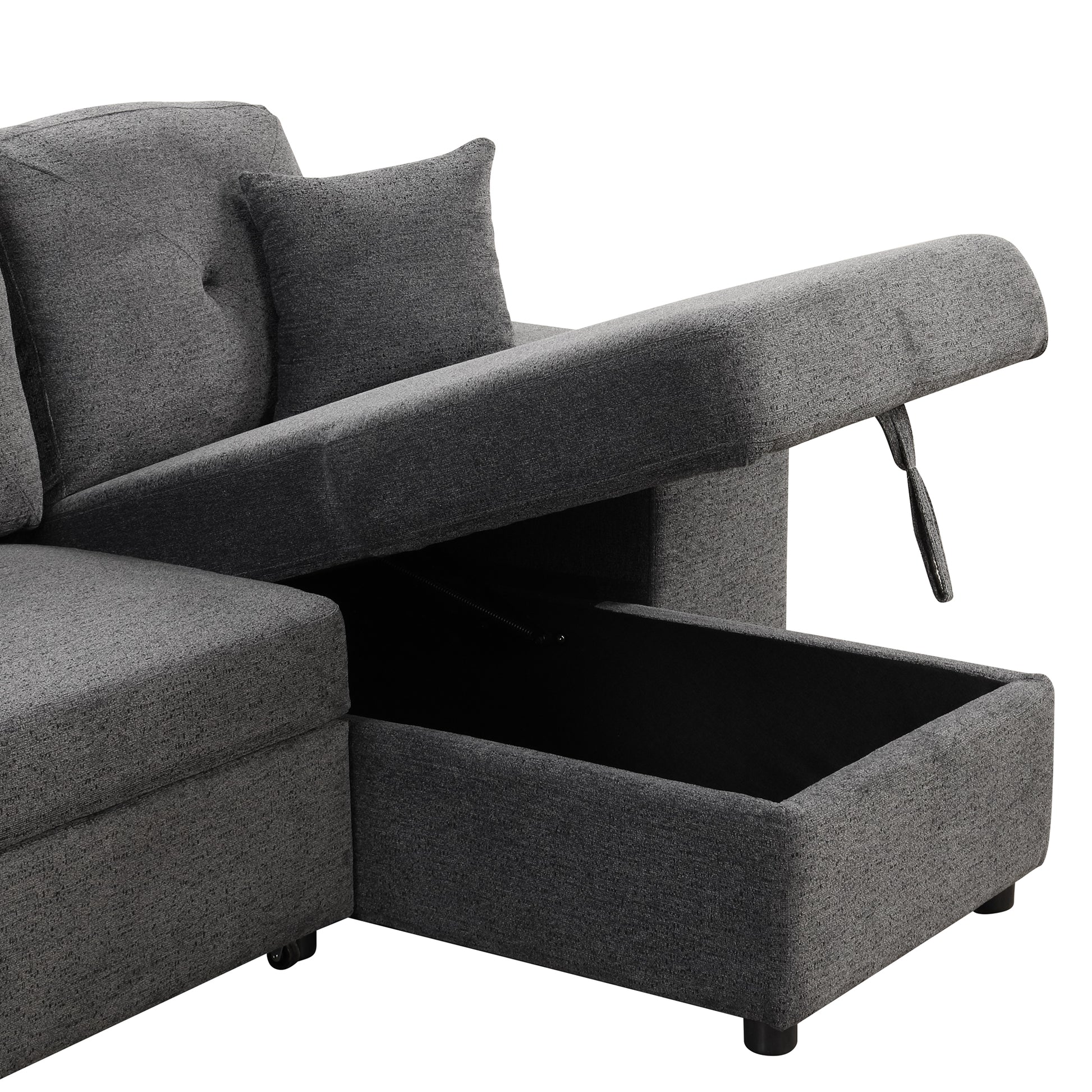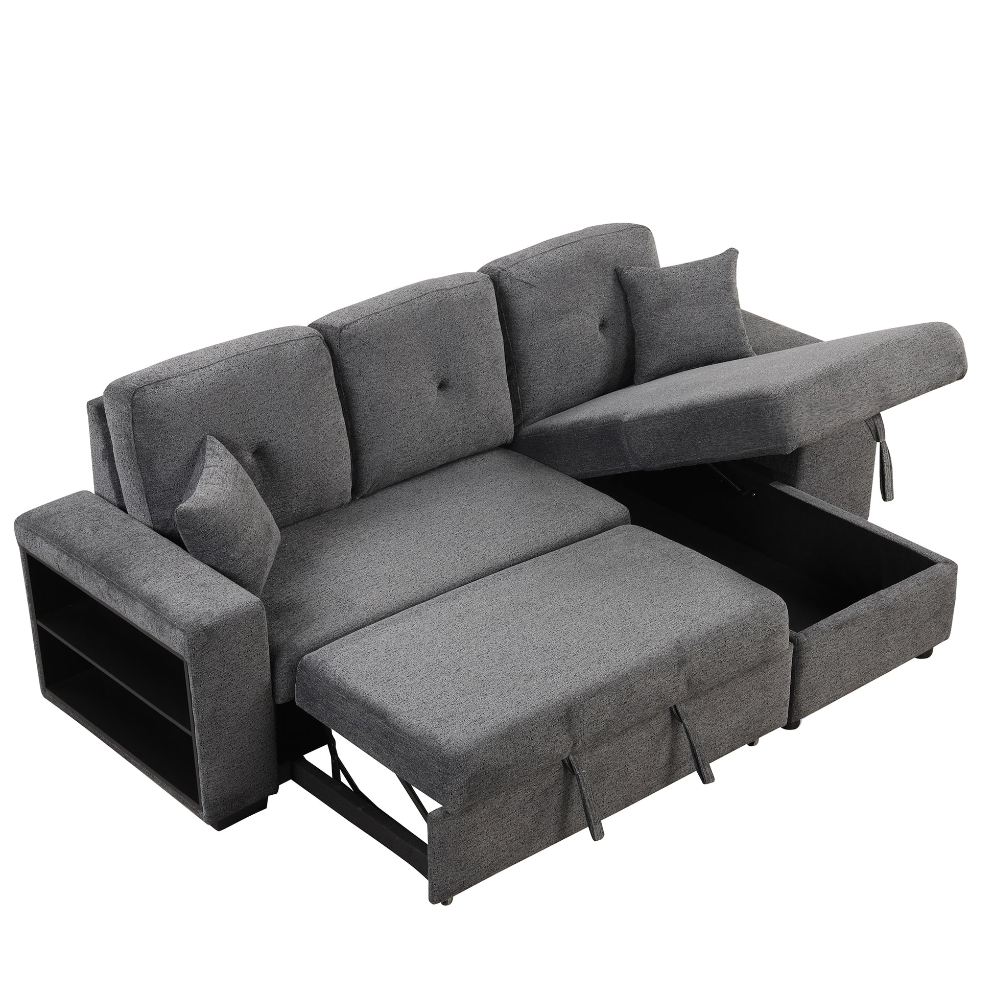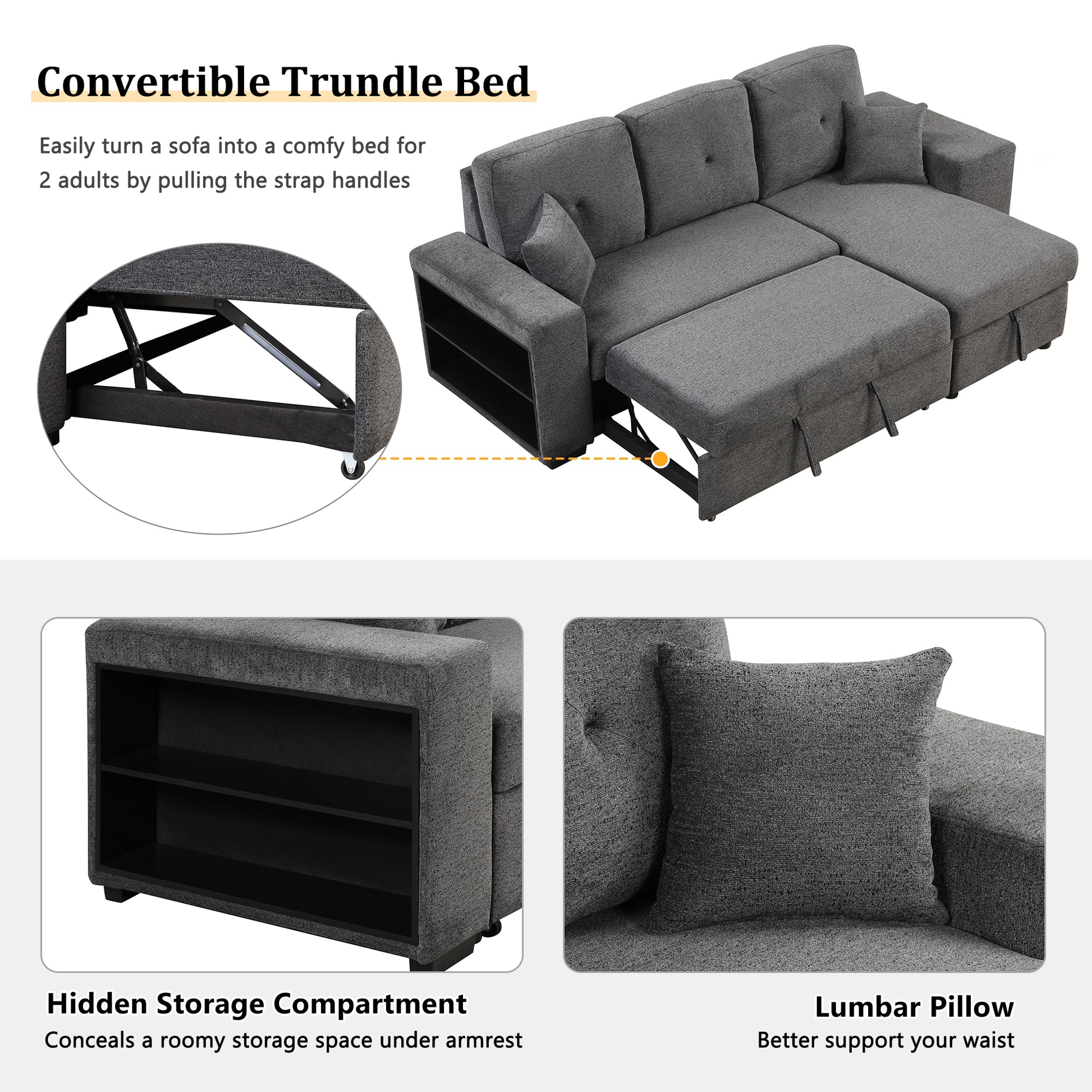 Reversible Sleeper Sectional Sofa Bed With Side Shelf And 2 Stools,Pull Out L Shaped Sofa Bed,Corner Sofa Bed With Storage Chaise Left Right Hande For Living Room,Blue Black Black Blue Foam Velvet