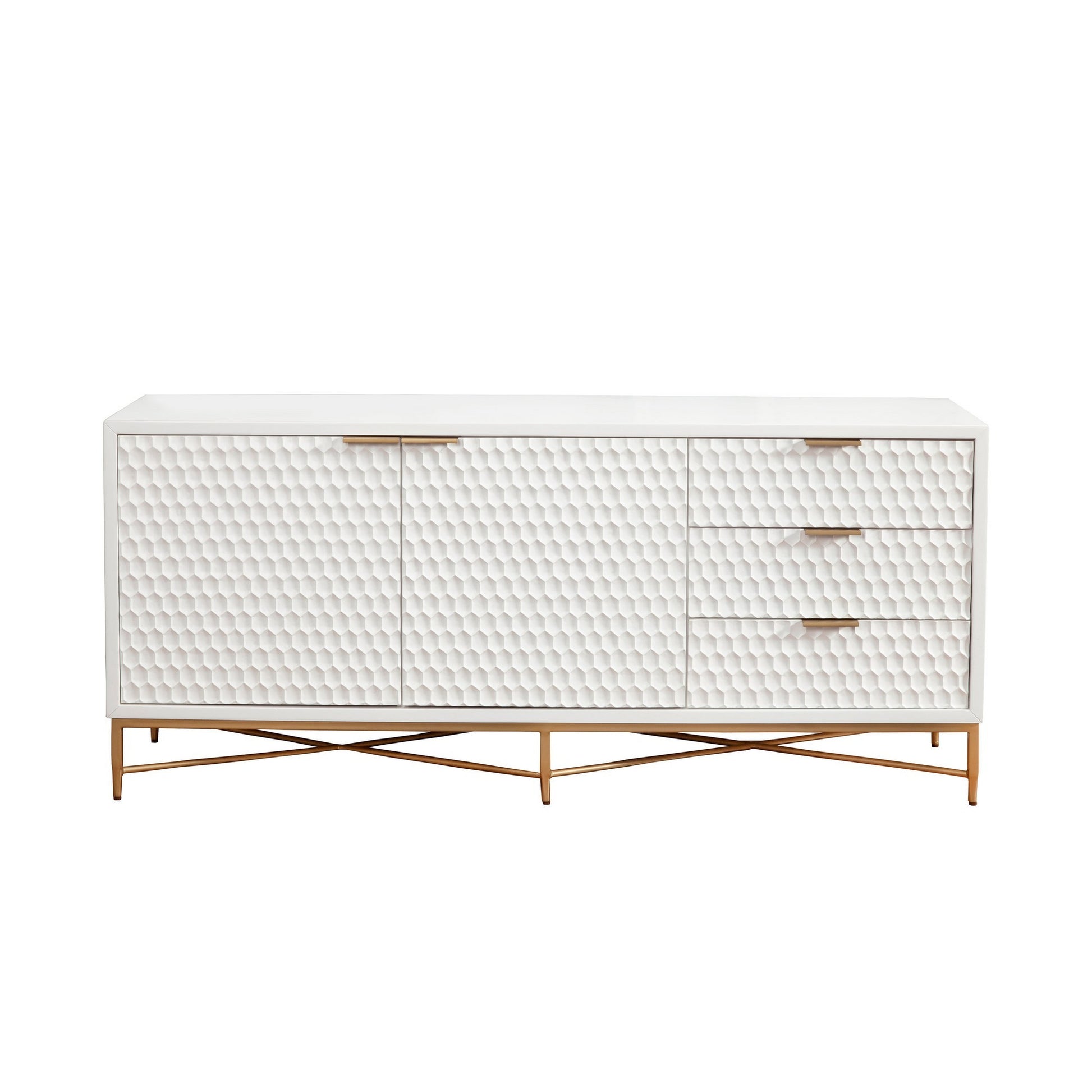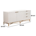 Rexi 64 Inch Tv Media Entertainment Center Console, 3 Drawers, White, Gold White Gold 60 69 Inches Wood