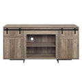 Rick 60 Inch Tv Media Entertainment Console, 2 Farmhouse Barn Doors, Gray Gray 60 69 Inches Metal