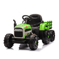 Ride On Tractor With Trailer,12V Battery Powered Electric Tractor Toy W Remote Control,Electric Car For Kids,Three Speed Adjustable,Power Display, Usb,Mp3 ,Bluetooth,Led Light,Two Point Safety Belt Green Plastic