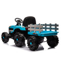 Ride On Tractor With Trailer,12V Battery Powered Electric Tractor Toy W Remote Control,Electric Car For Kids,Three Speed Adjustable,Power Display, Usb,Mp3 ,Bluetooth,Led Light,Two Point Safety Belt Blue Plastic