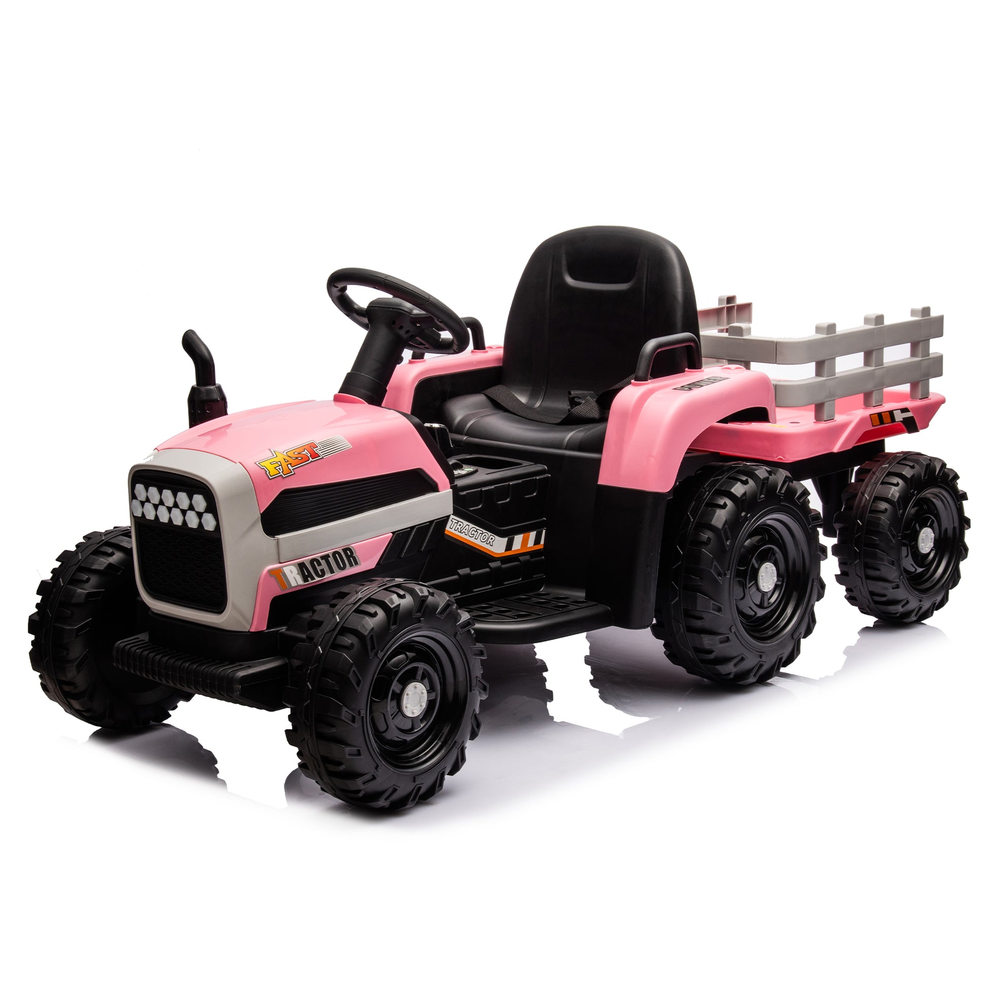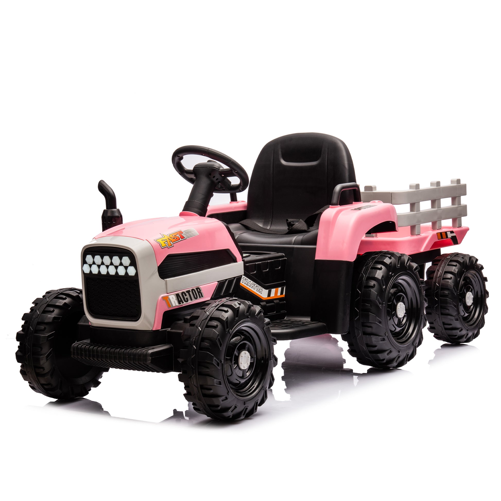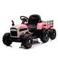 Ride On Tractor With Trailer,24V Battery Powered Electric Tractor Toy, 200W*2Motor 1.86 4.97Mph Remote Control,Electric Car For Kids,Three Speed Adjustable,Usb,Mp3 ,Bluetooth,Led Light, Safety Belt