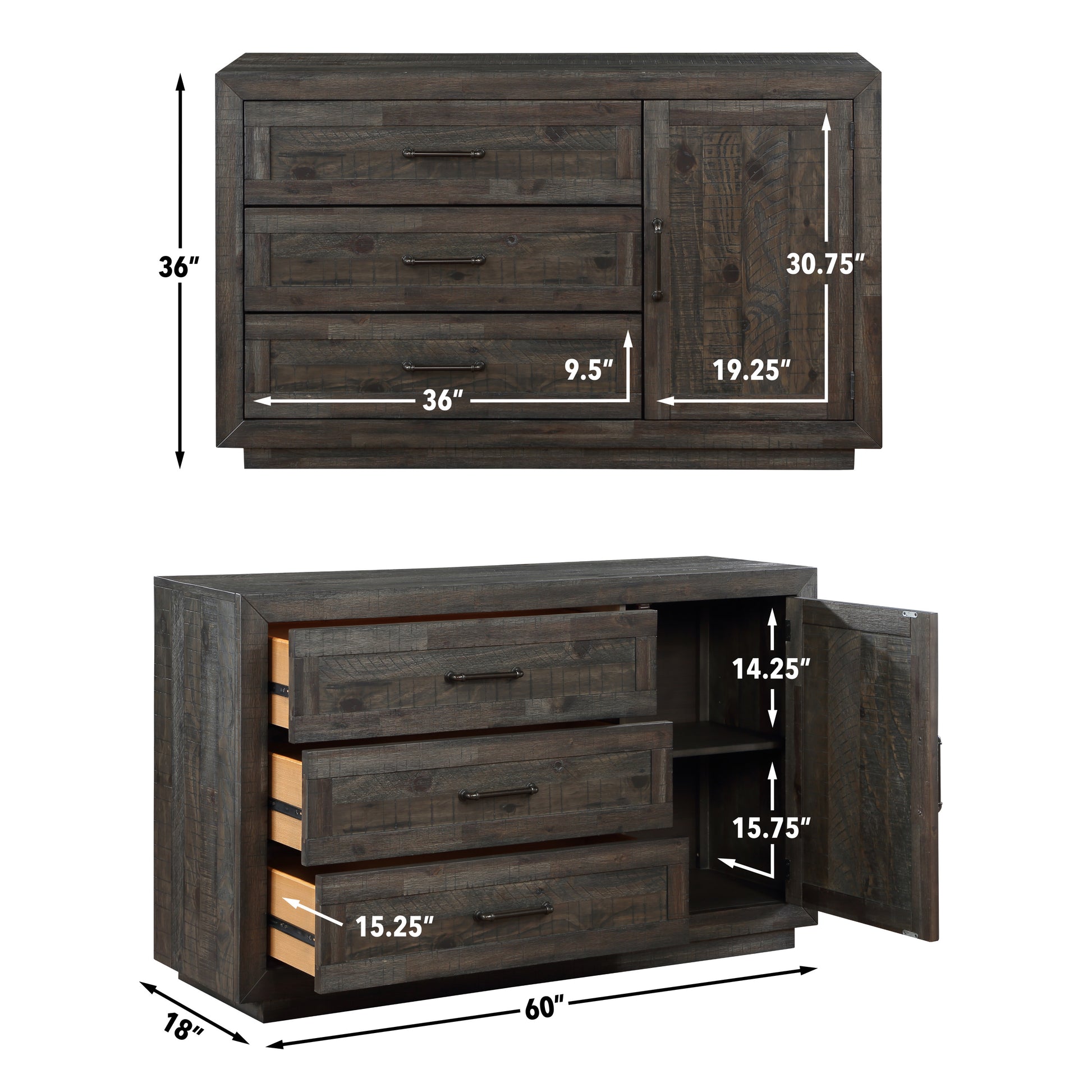 Riverdale Server Dark Grey Dark Gray Wood