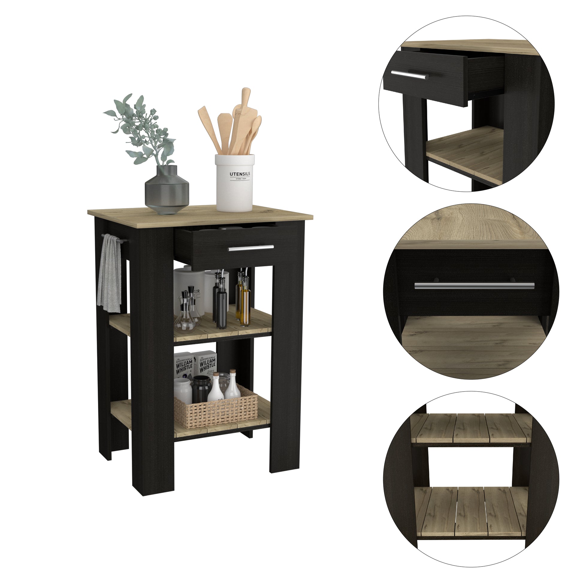 Rockaway 1 Drawer 2 Shelf Kitchen Island Black Wengue And Light Oak Black Particle Board