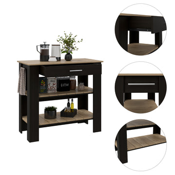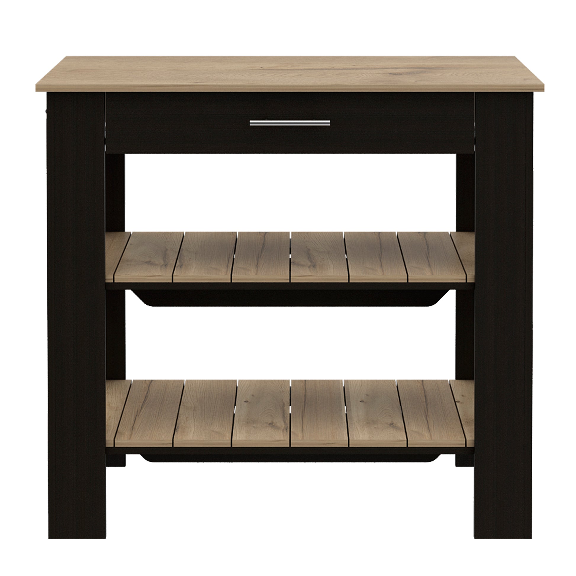 Rockaway 1 Drawer 2 Shelf Kitchen Island Black Wengue And Light Oak Black Particle Board