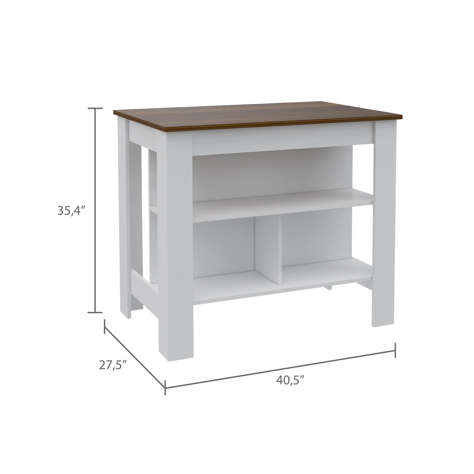 Rockaway 3 Shelf Kitchen Island White And Walnut White Particle Board