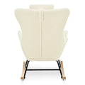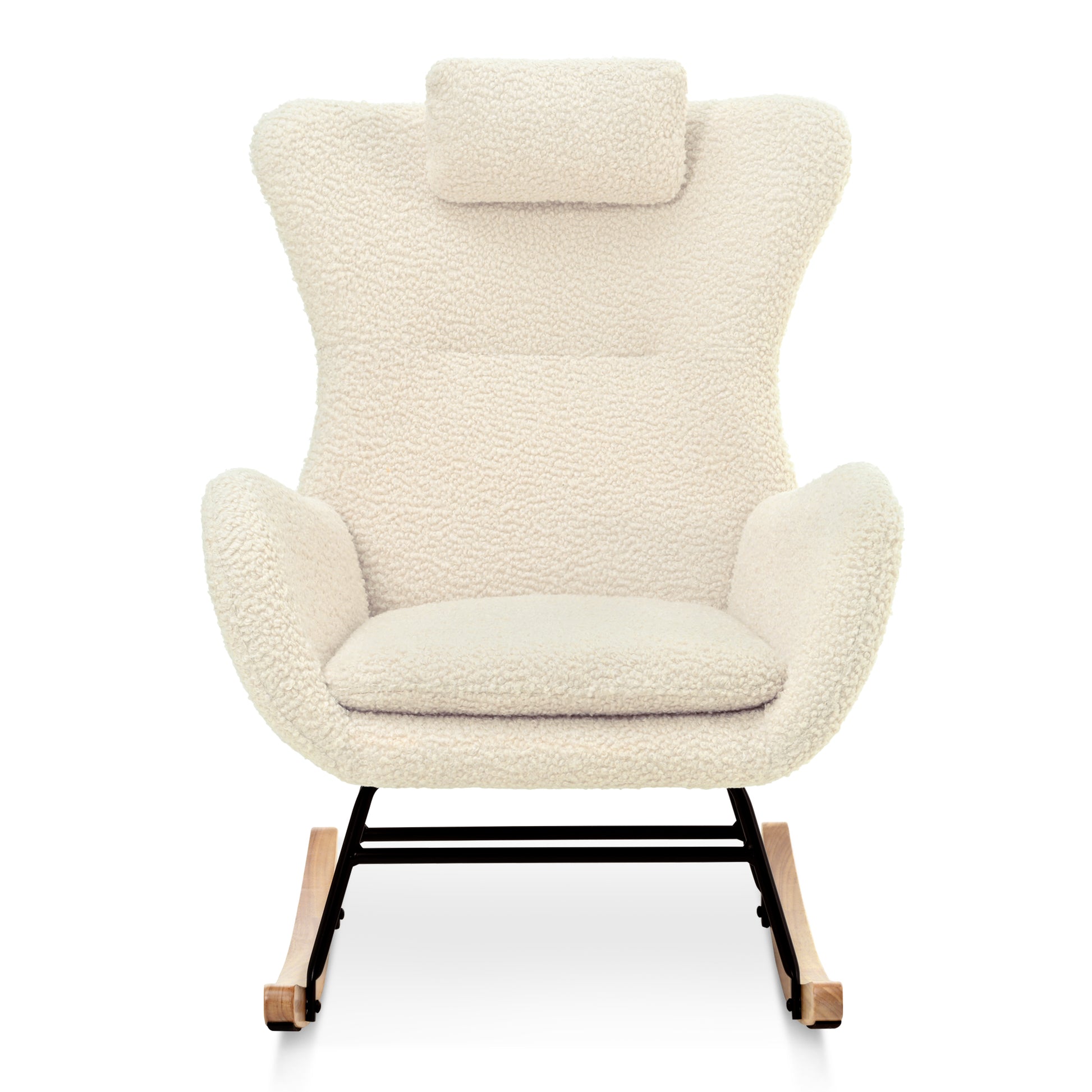 Rocking Chair Nursery, Teddy Upholstered Rocker Glider Chair With High Backrest, Adjustable Headrest & Pocket, Comfy Glider Chair For Nursery, Bedroom, Living Room, Offices, Rubber Wood, Beige Beige Polyester