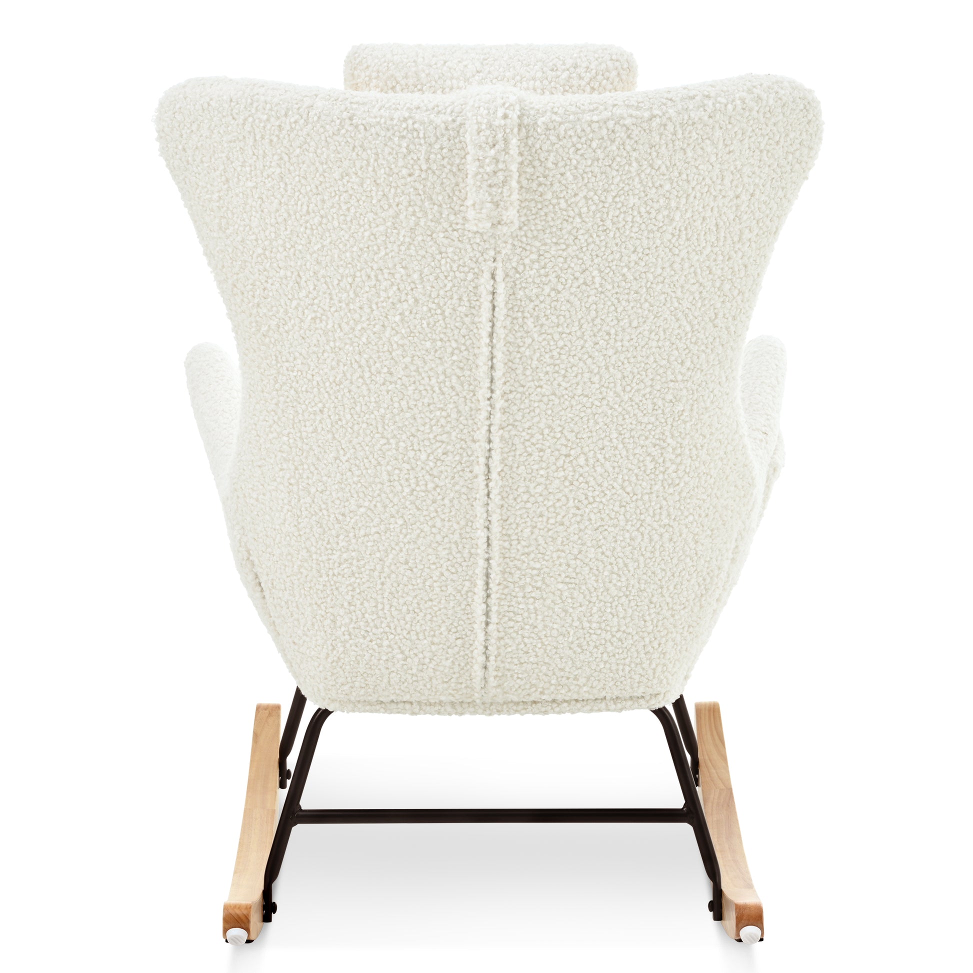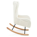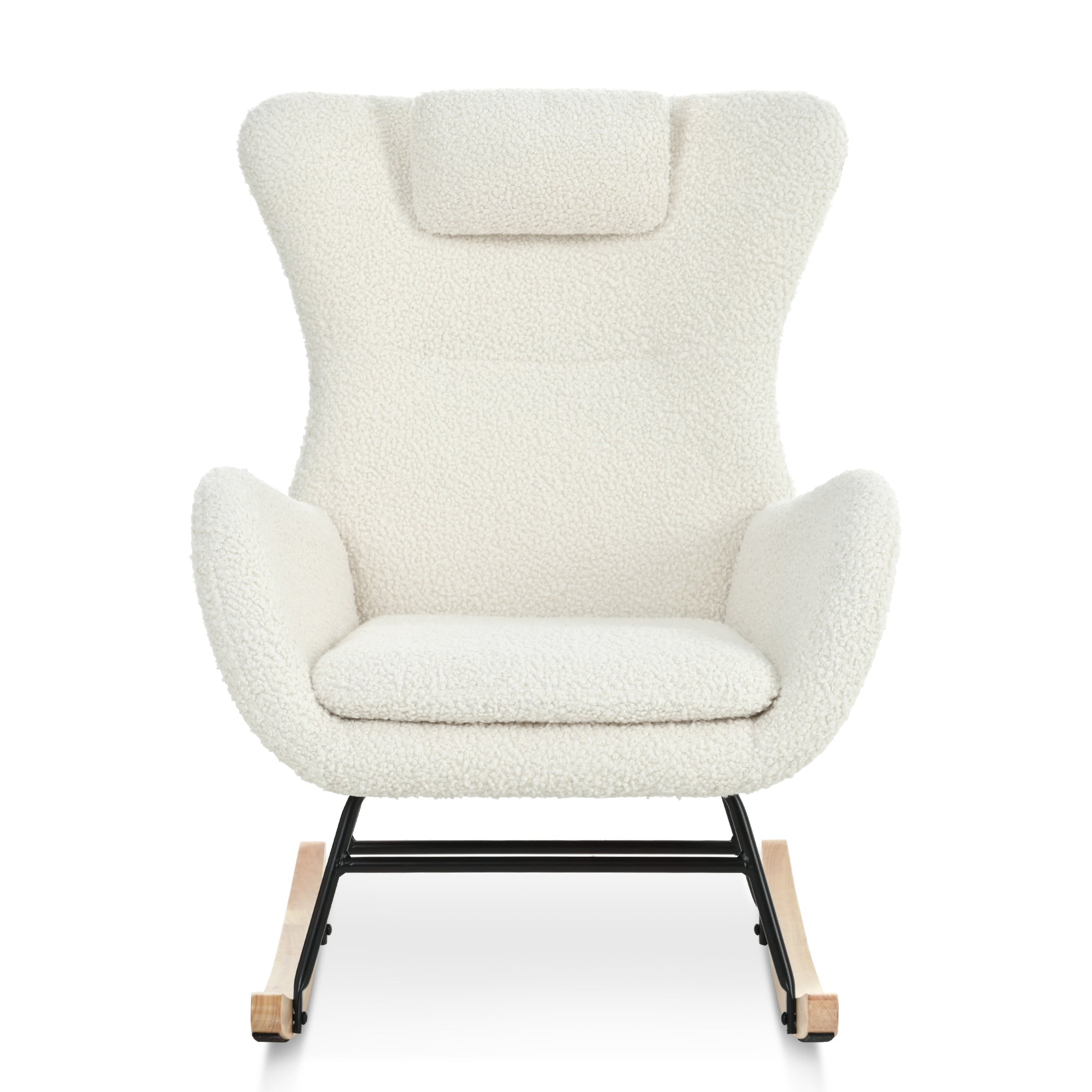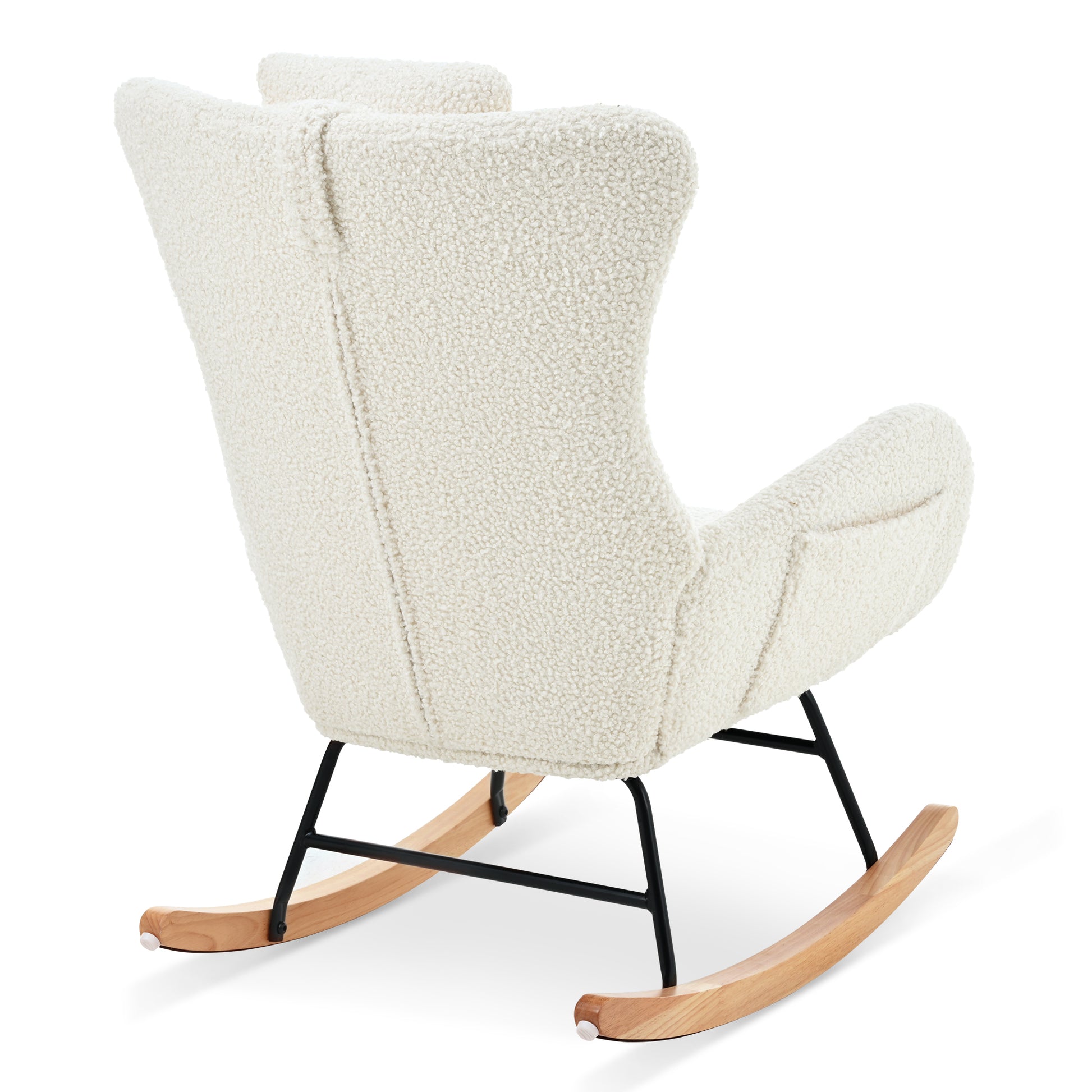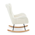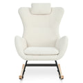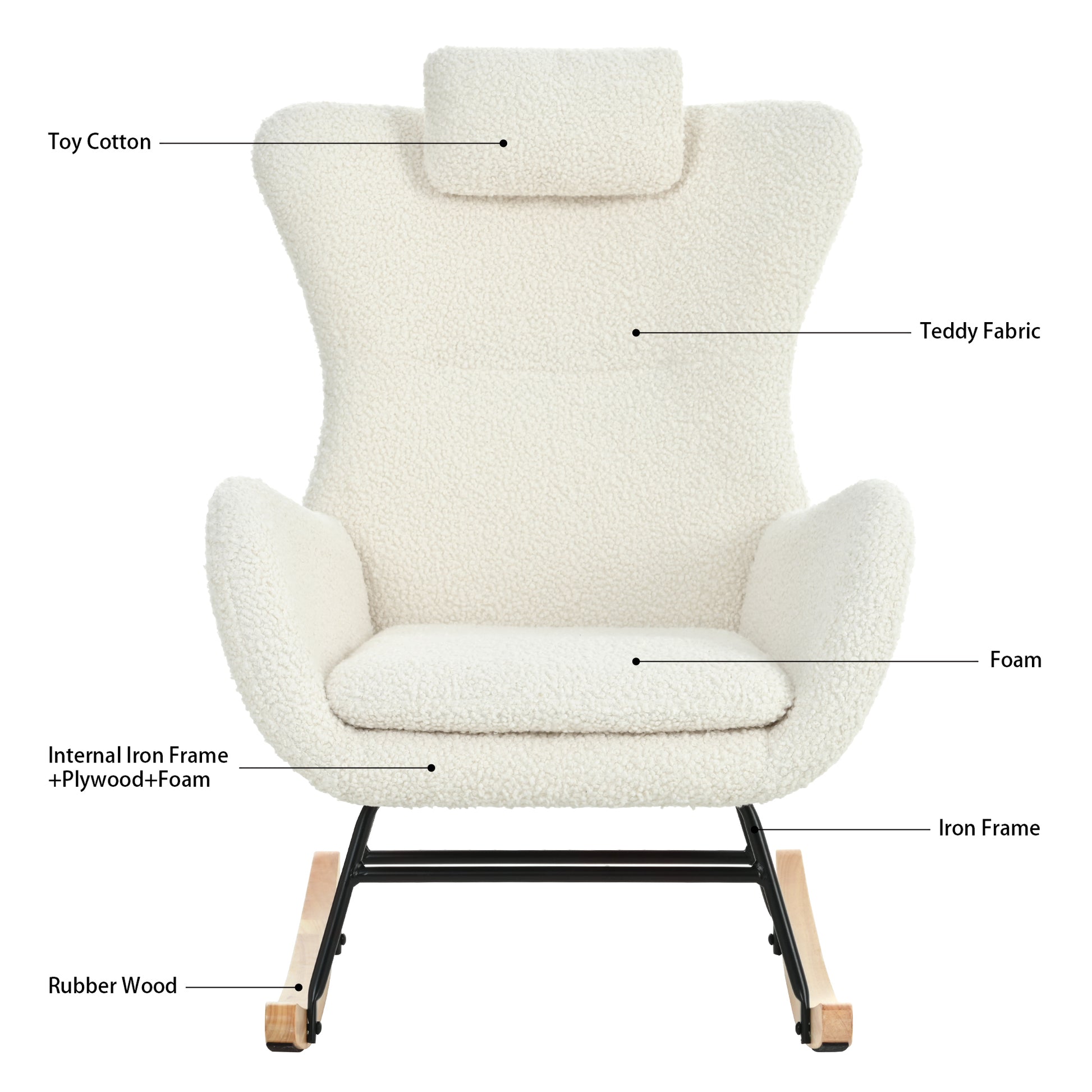 Rocking Chair Nursery, Teddy Upholstered Rocker Glider Chair With High Backrest, Adjustable Headrest & Pocket, Comfy Glider Chair For Nursery, Bedroom, Living Room, Offices, Rubber Wood, White White Polyester
