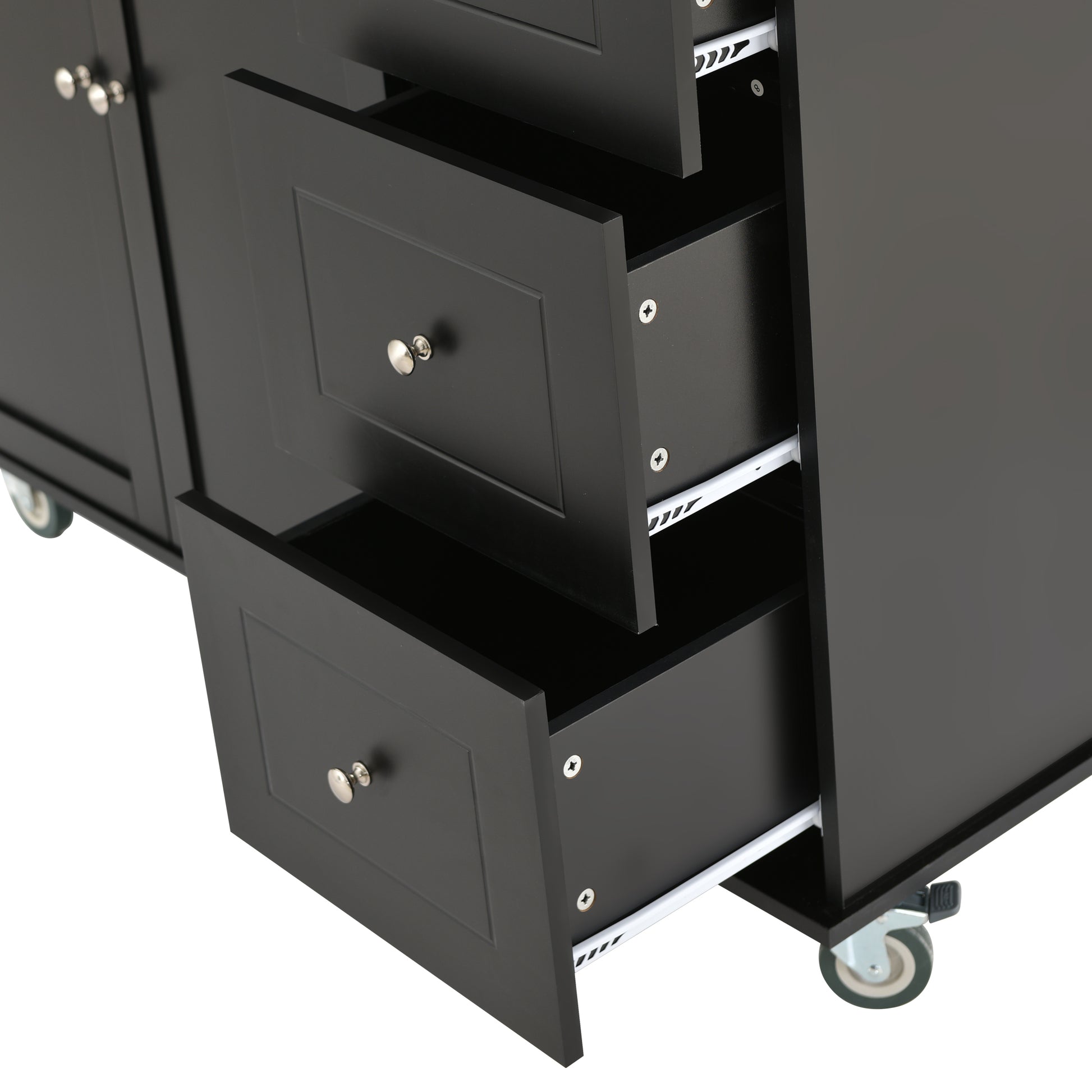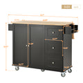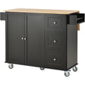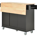 Rolling Mobile Kitchen Island With Solid Wood Top And Locking Wheels,52.7 Inch Width,Storage Cabinet And Drop Leaf Breakfast Bar,Spice Rack, Towel Rack & Drawer Black Black Mdf