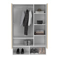 Name: Rosie Armoire, Two Open Shelves, Double Door, Five Shelves, Hanging Rod -Light Oak / White