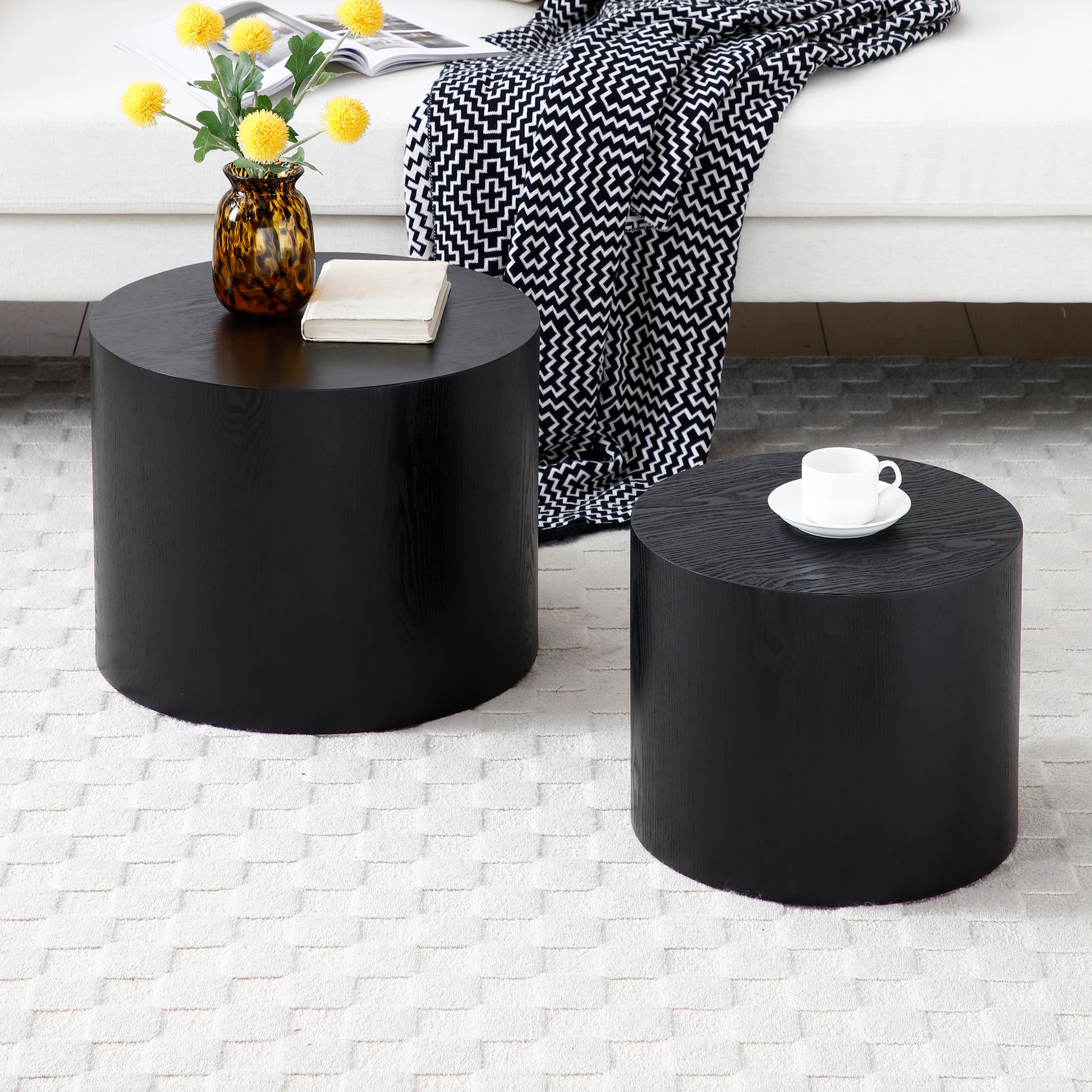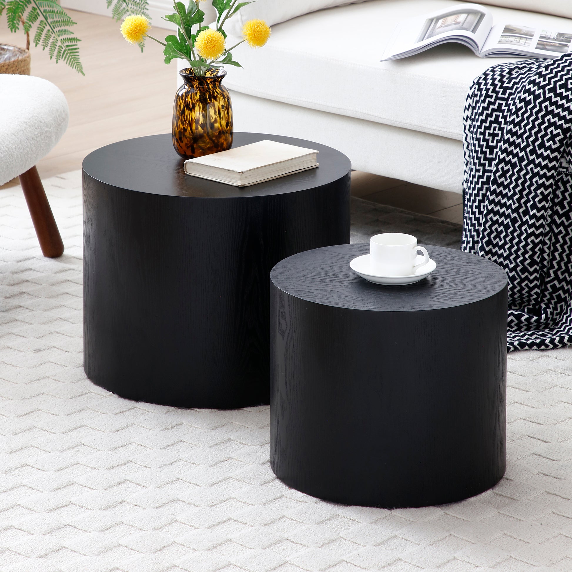 Round Coffee Table Set Of 2, Nesting Coffee Tables For Mdf With Veneer .For Living Room,Office,Bedroom,Natural, 4Colors Black Primary Living Space Modern Coffee & End Tables Round Mdf