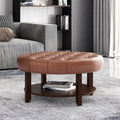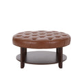 Round Ottoman Light Brown Pu