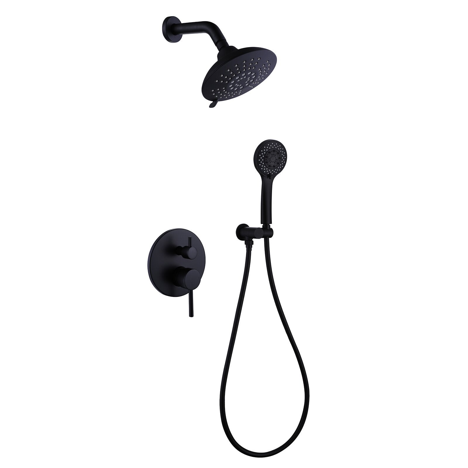 Round Shower System Wall Mounted Shower Faucet Rain Mixer Combo Set, Rain Shower Head Shower Set For Bathroom In Matte Black Matte Black Brass