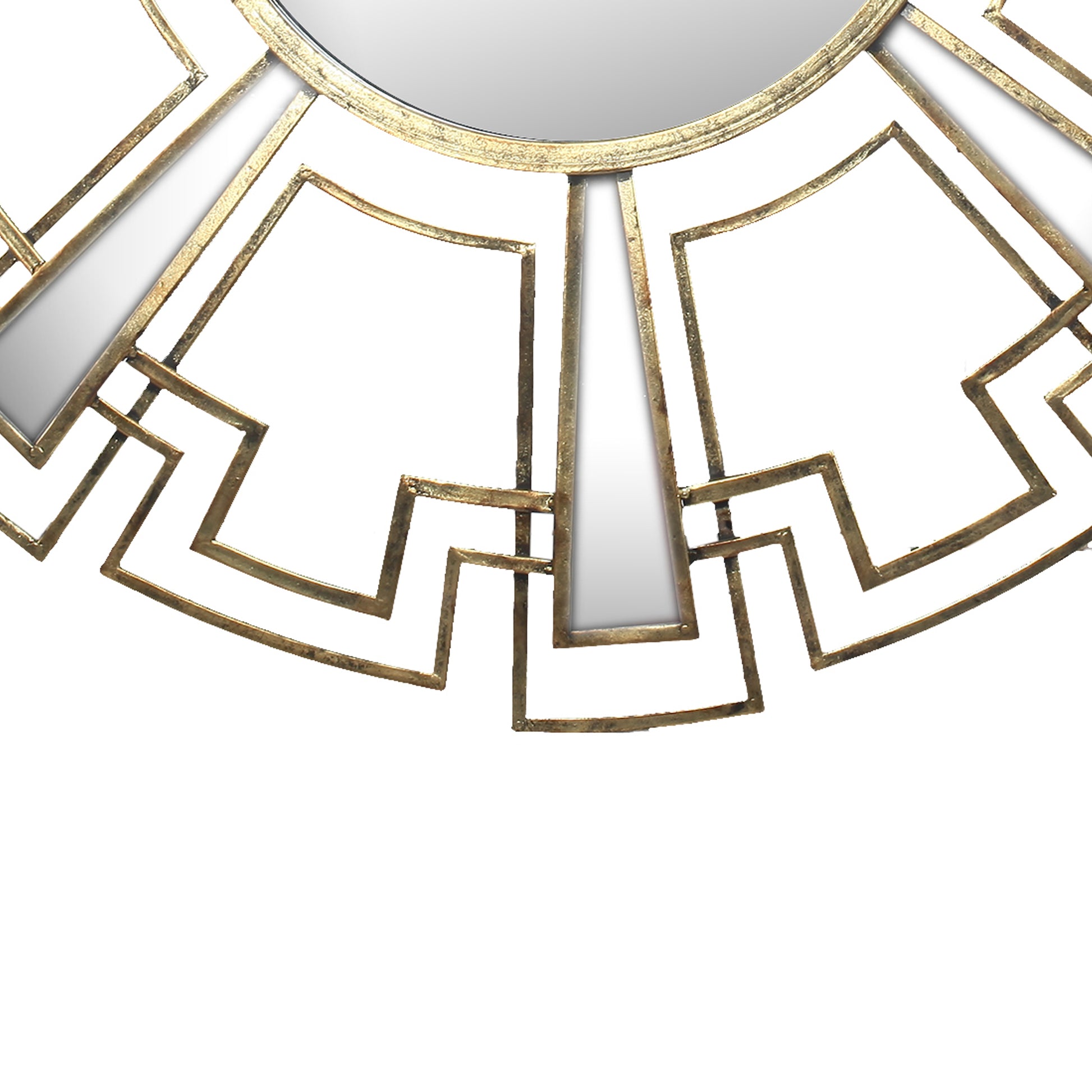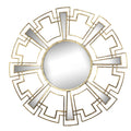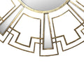 Round Sunburst Wall Mirror With Geometric Design Metal Frame, Gold Gold Iron