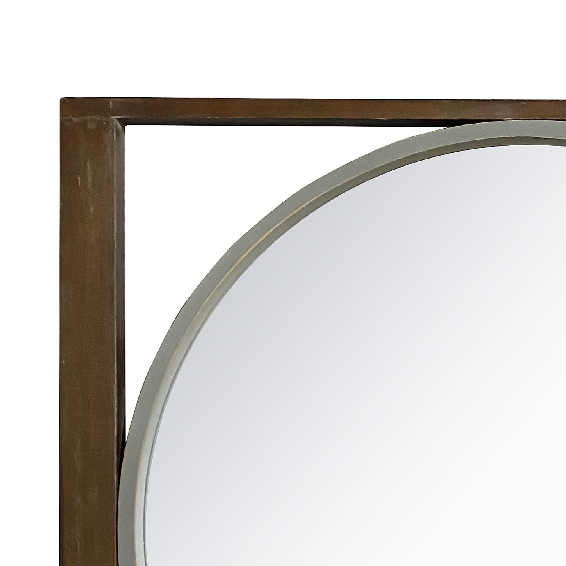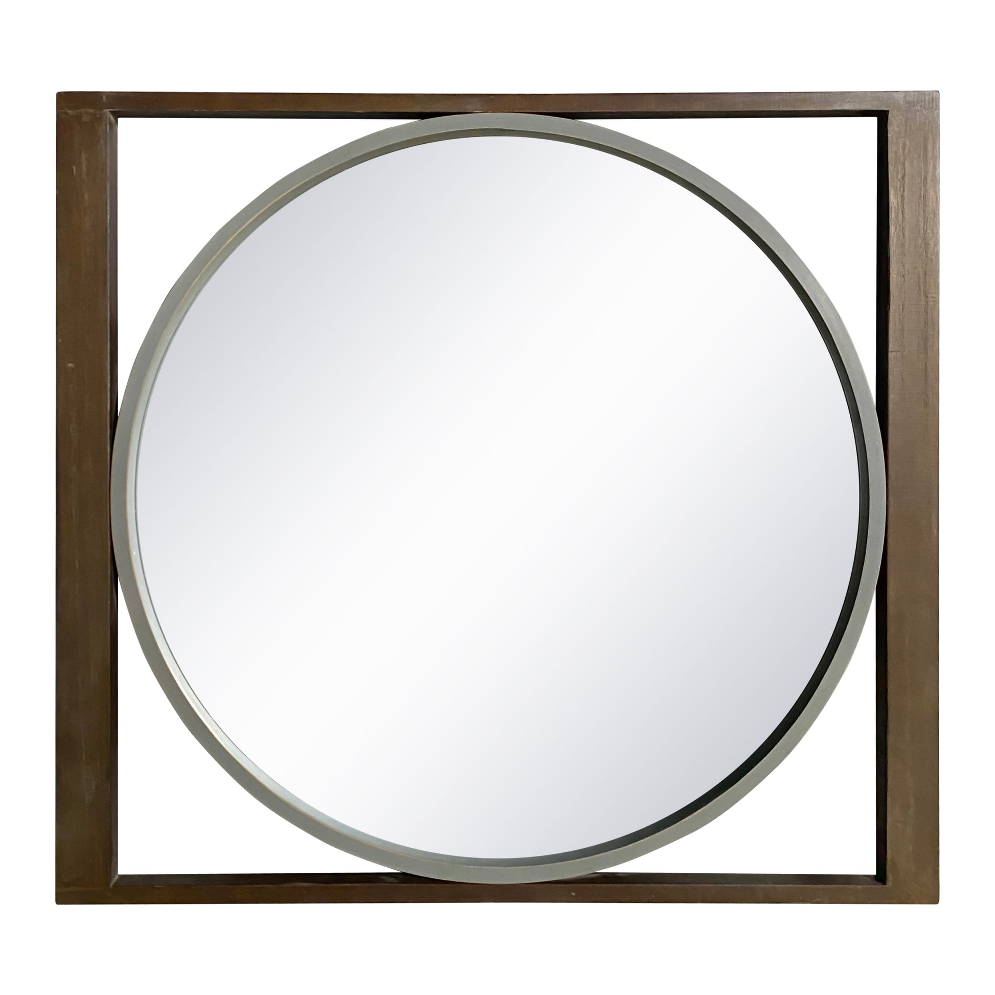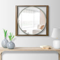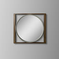 Round Wall Mirror With Rectangular Wooden Frame, Brown Brown Solid Wood
