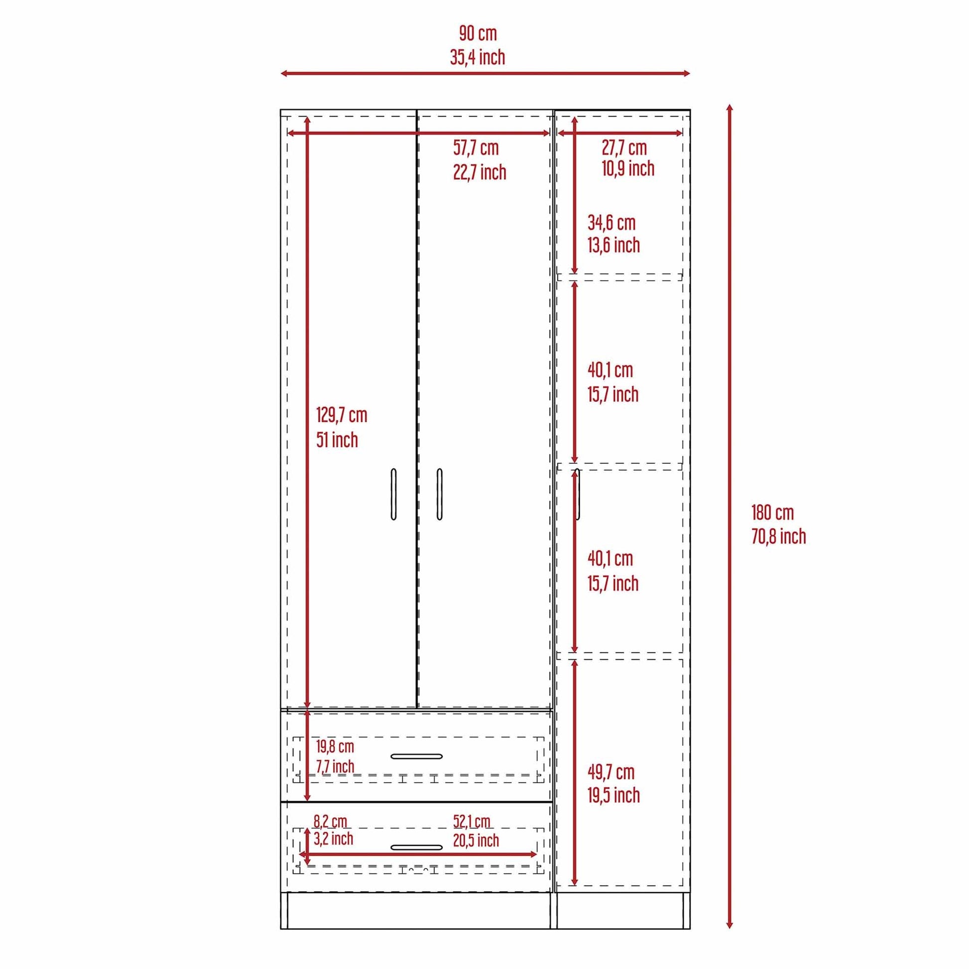 Rowaton 2 Drawer 3 Door Armoire White White Particle Board