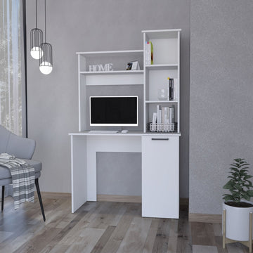 Rumford Computer Desk With Hutch And 3 Tier Storage Shelves White Mdf Engineered Wood