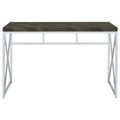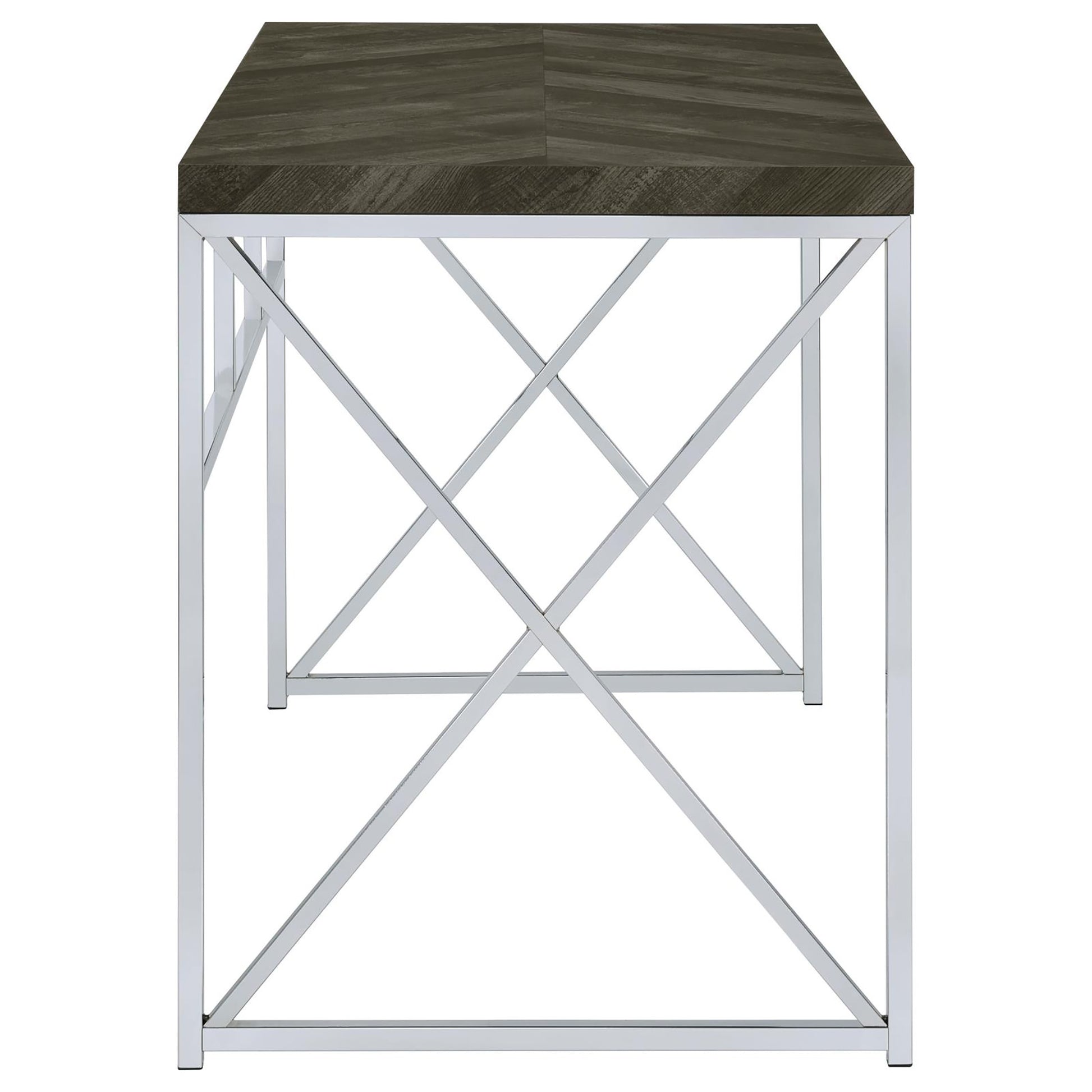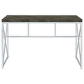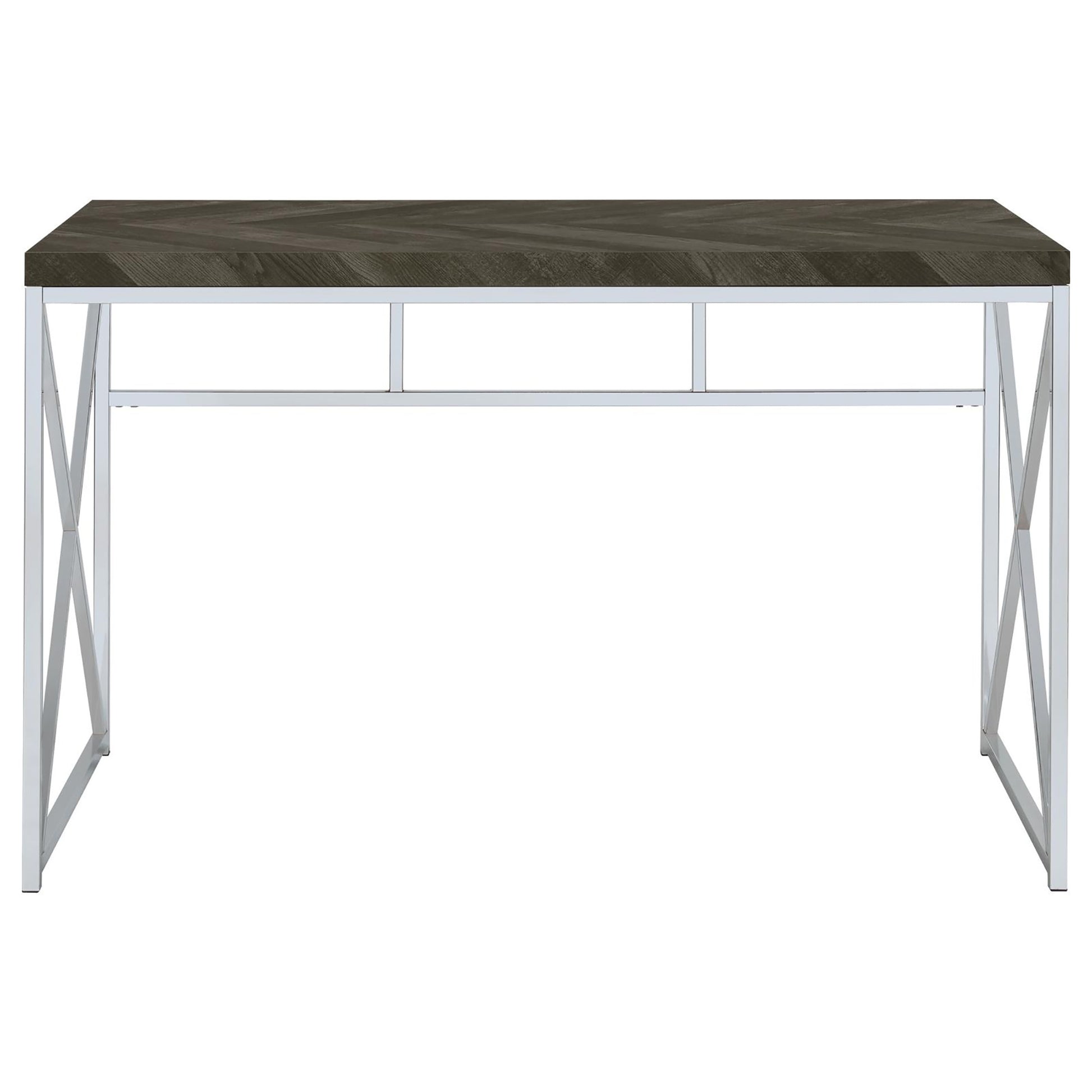 Rustic Grey Herringbone And Chrome Writing Desk Grey Writting Desk Office Contemporary,Modern Tabeltop Rectangular Desk Polished Wood