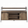 Rustic Oak And Black Tv Stand With Sliding Barn Door Oak Primary Living Space 50 59 Inches 50 59 Inches Paper Composite