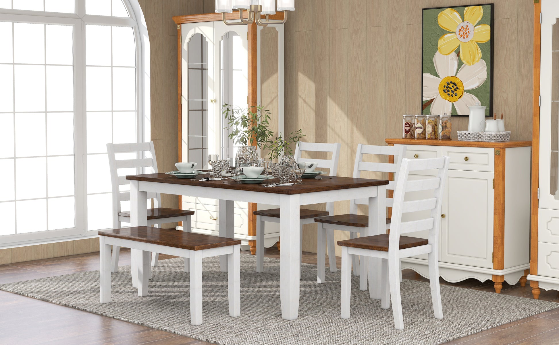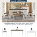 Rustic Style 6 Piece Dining Room Table Set With 4 Ergonomic Designed Chairs & A Bench Walnut Cottage White Walnut Solid Wood