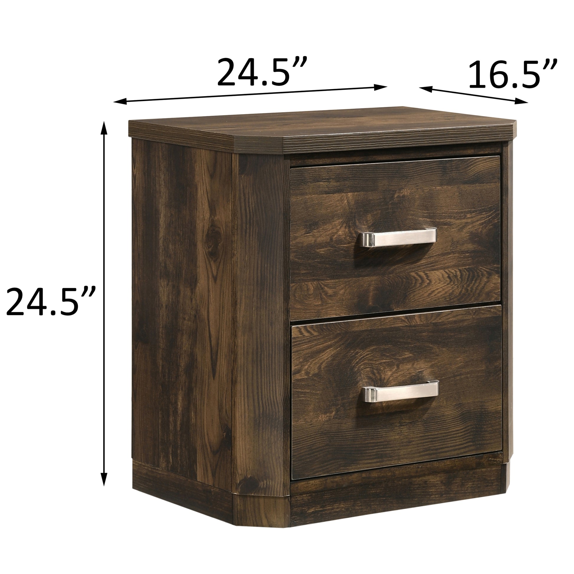 Rustic Walnut 2 Drawer Nightstand Rustic Brown 2 Drawers Bedroom Rectangle Rustic Rubberwood Solid Wood Rust Wood