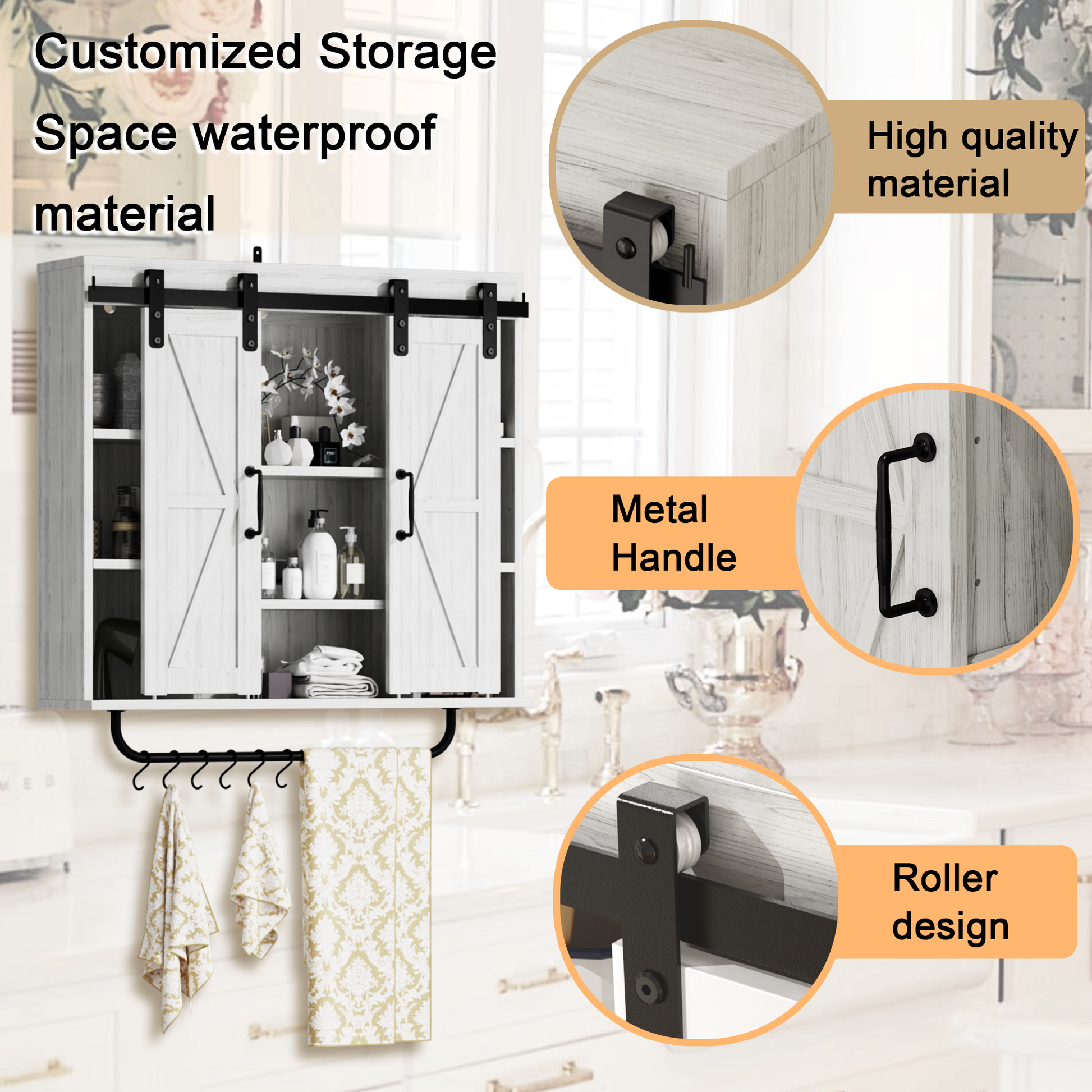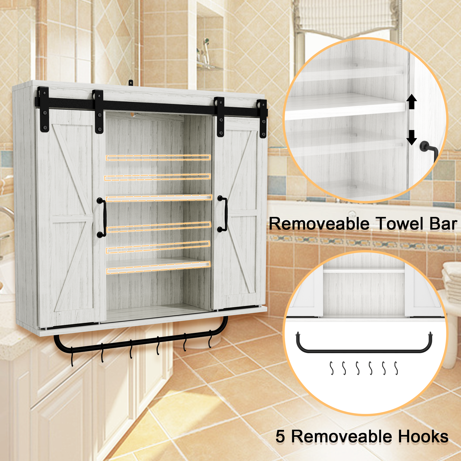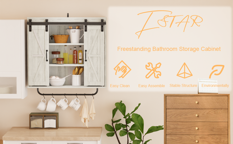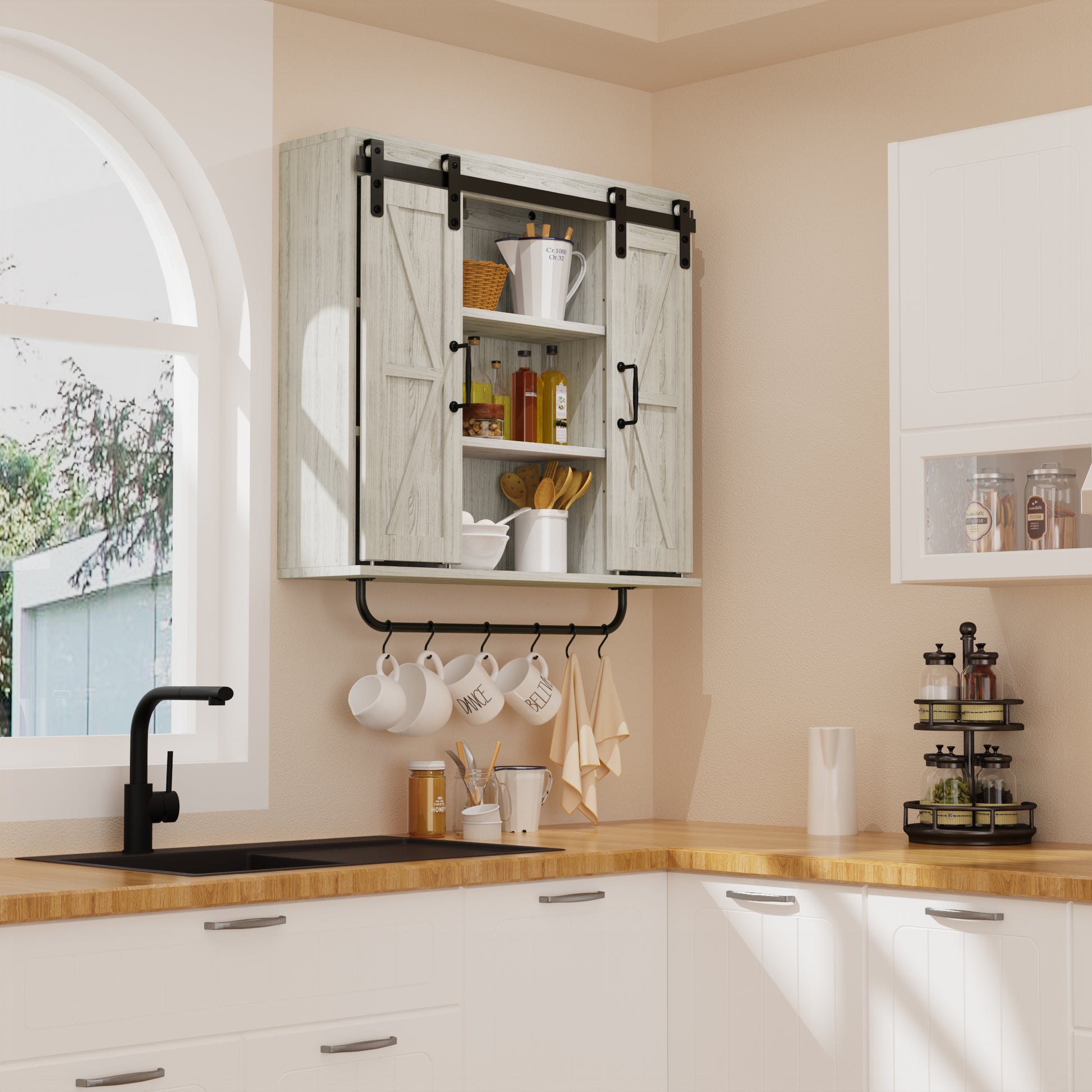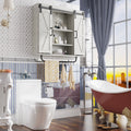 Rustic Wood Wall Storage Cabinet With Two Sliding Barn Door, 3 Tier Decorative Farmhouse Vintage Cabinet For Kitchen Dining, Bathroom, Living Room, Vintage Gray Gray Adjustable Shelves Particle