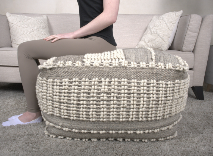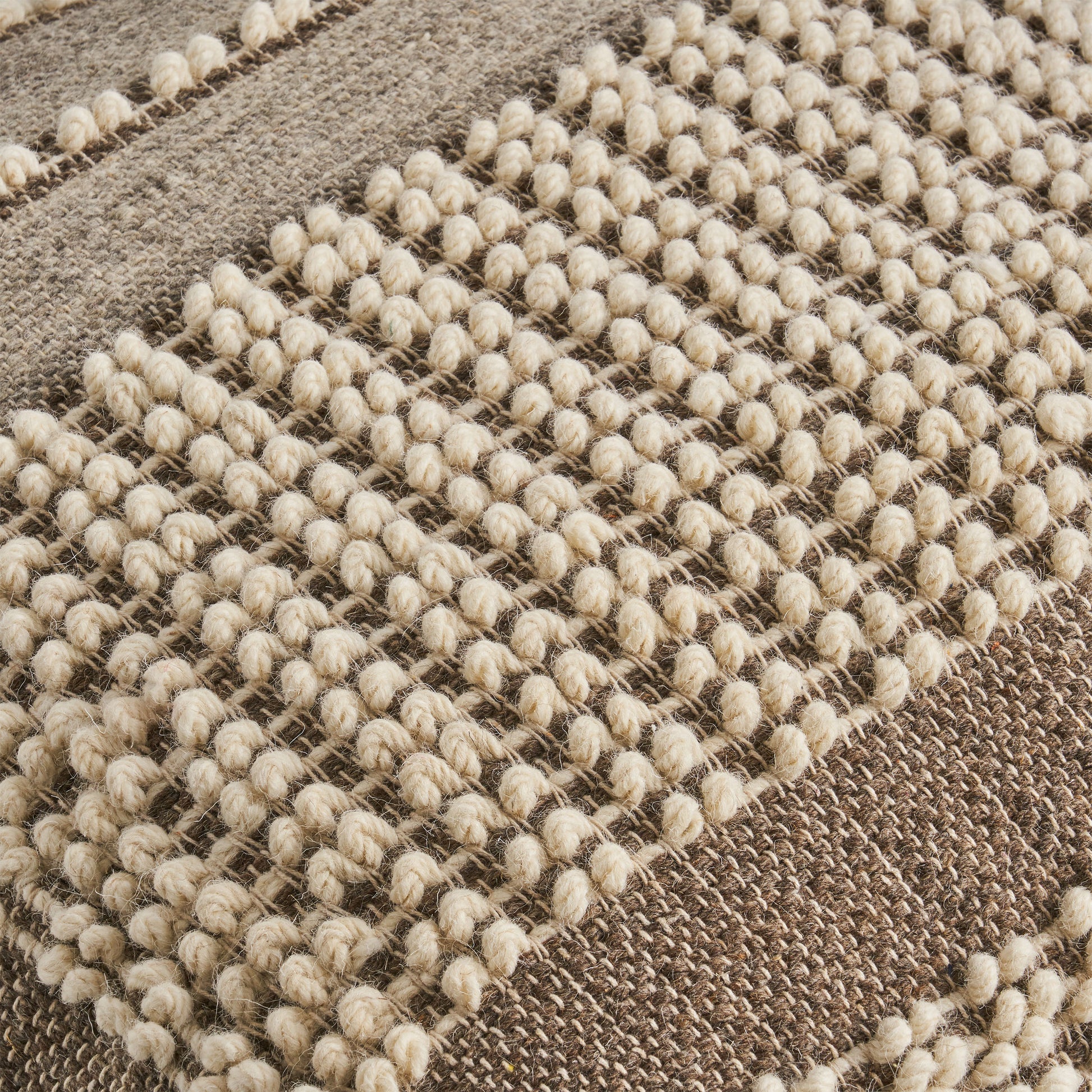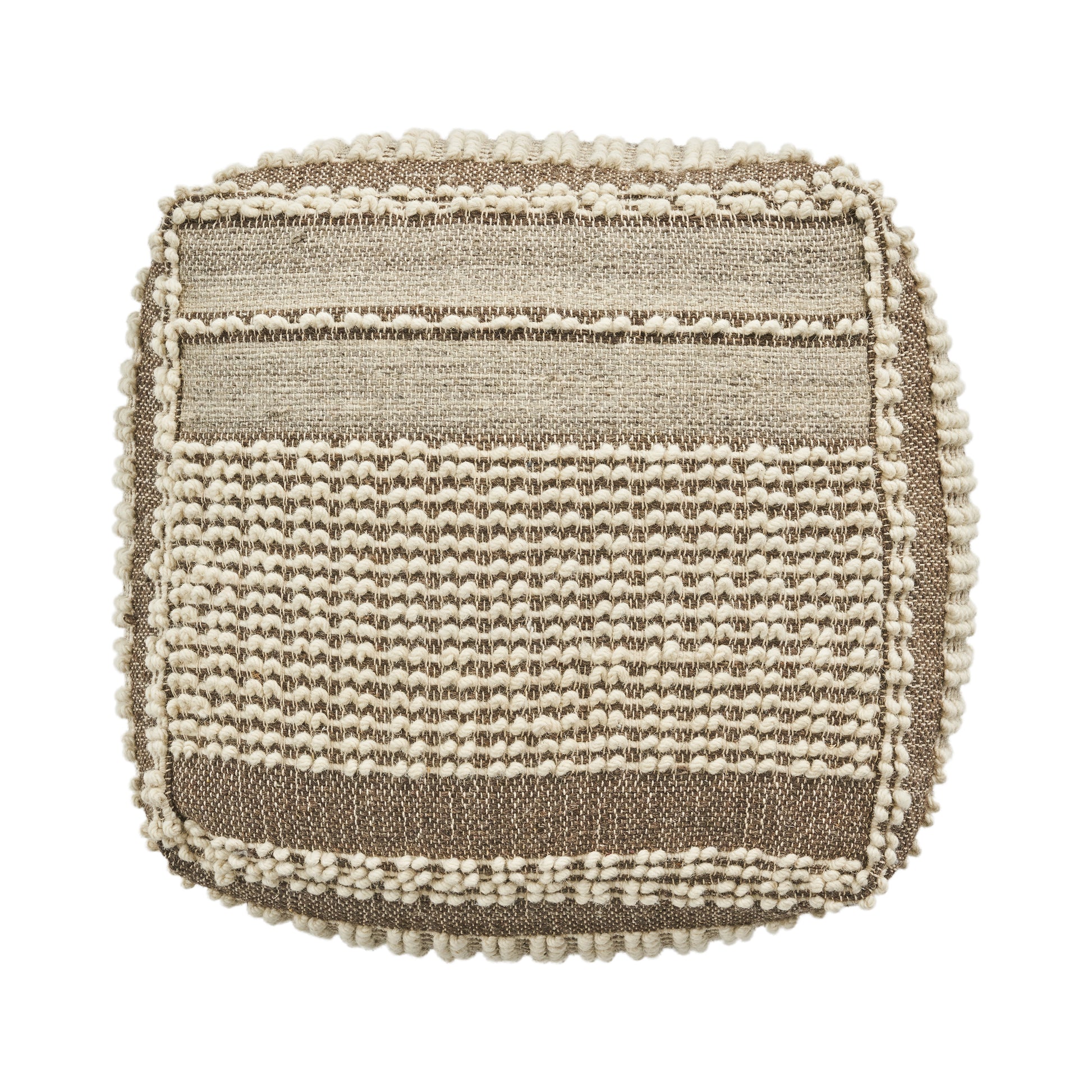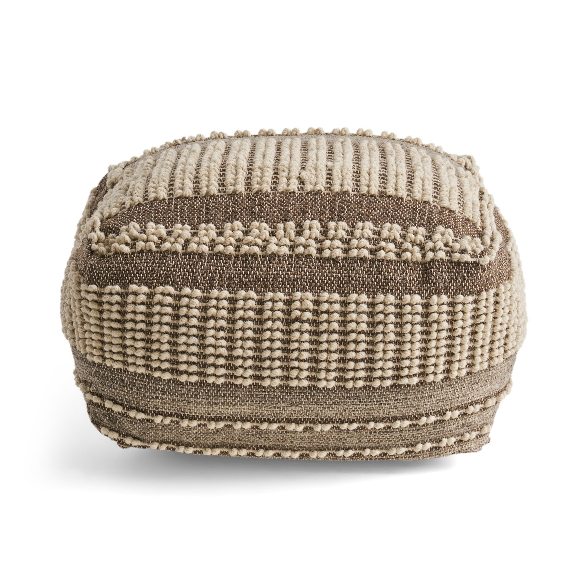 Rustic Wool And Cotton Large Pouf, Brown Brown Beige Wool