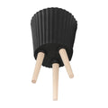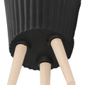 S 2 10 12" Ridged Planter W Wood Legs, Black Kd Black Polyresin