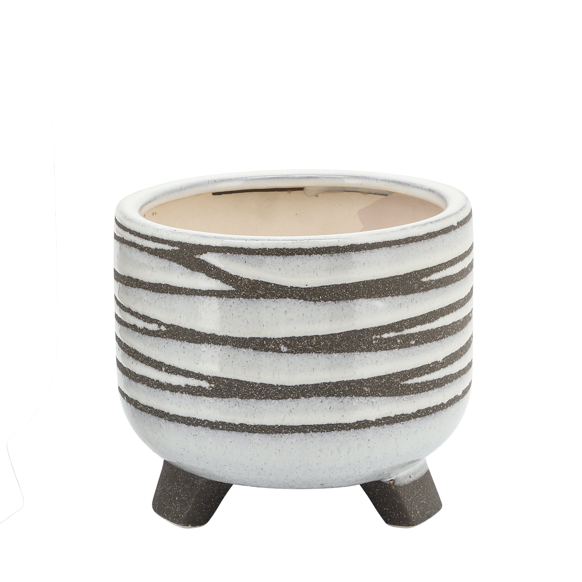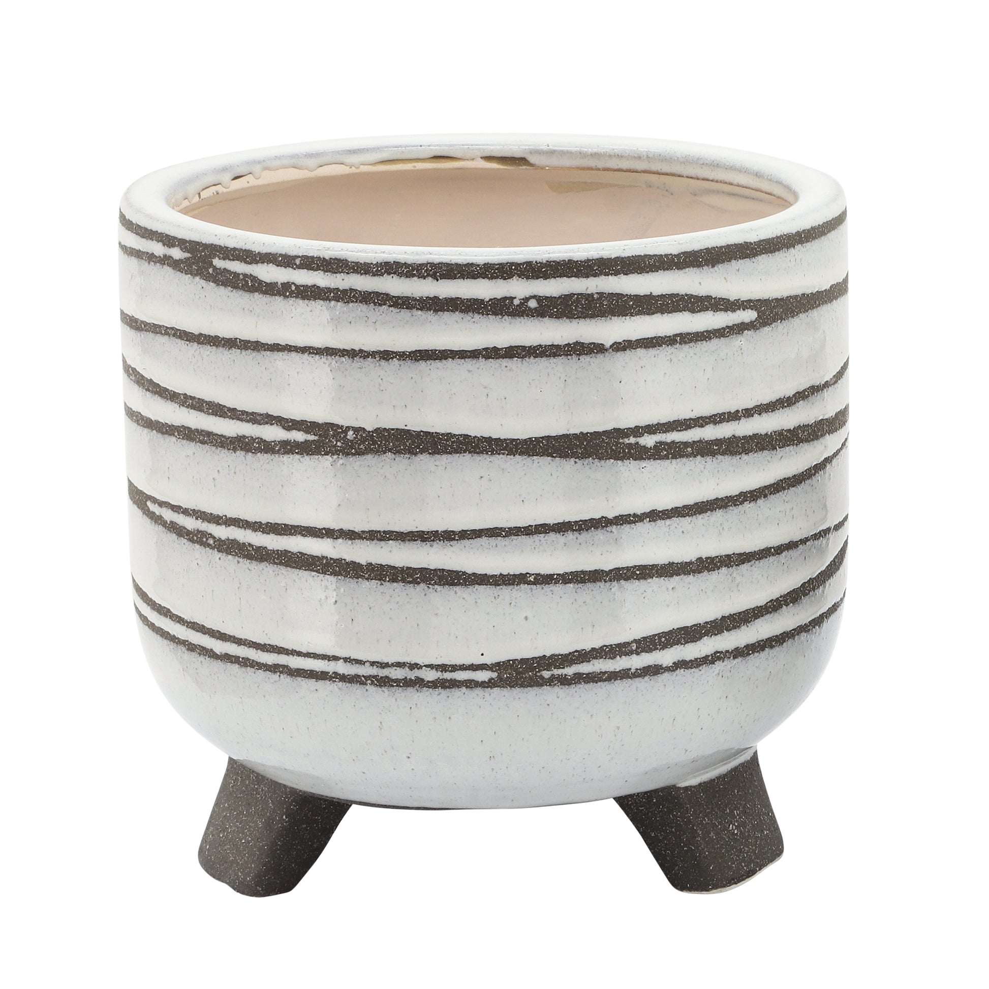 S 2 Ceramic 6 8" Footed Planter, White White Ceramic
