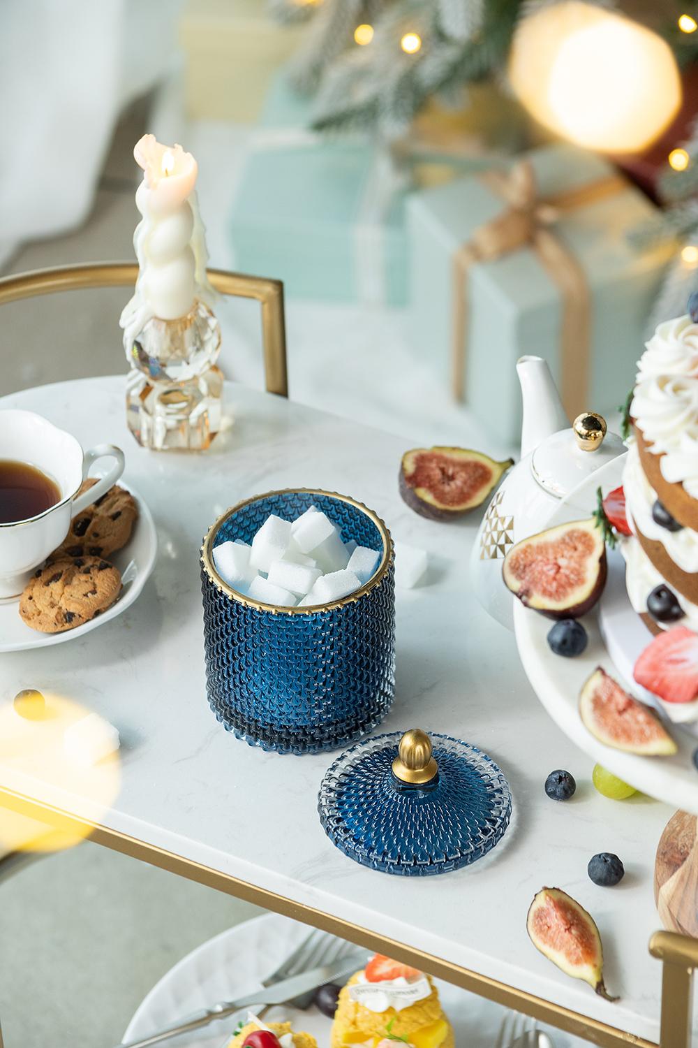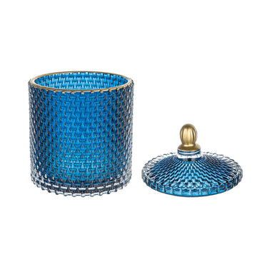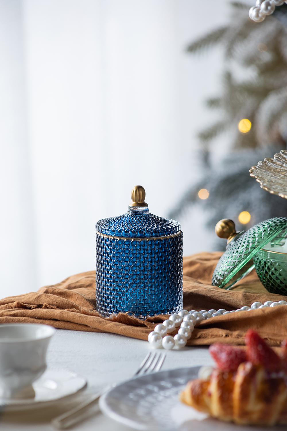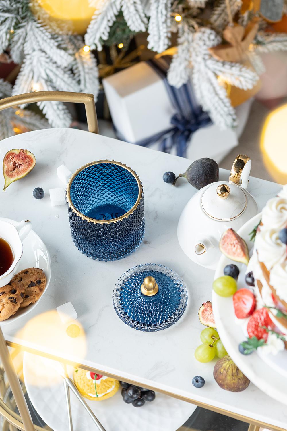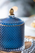 S 2 Glass Candy Jar With Lid, Christmas Candy Jar Containers, Blue Gold Blue Glass