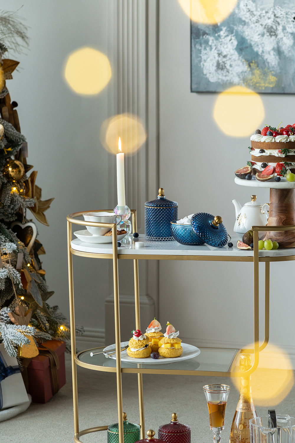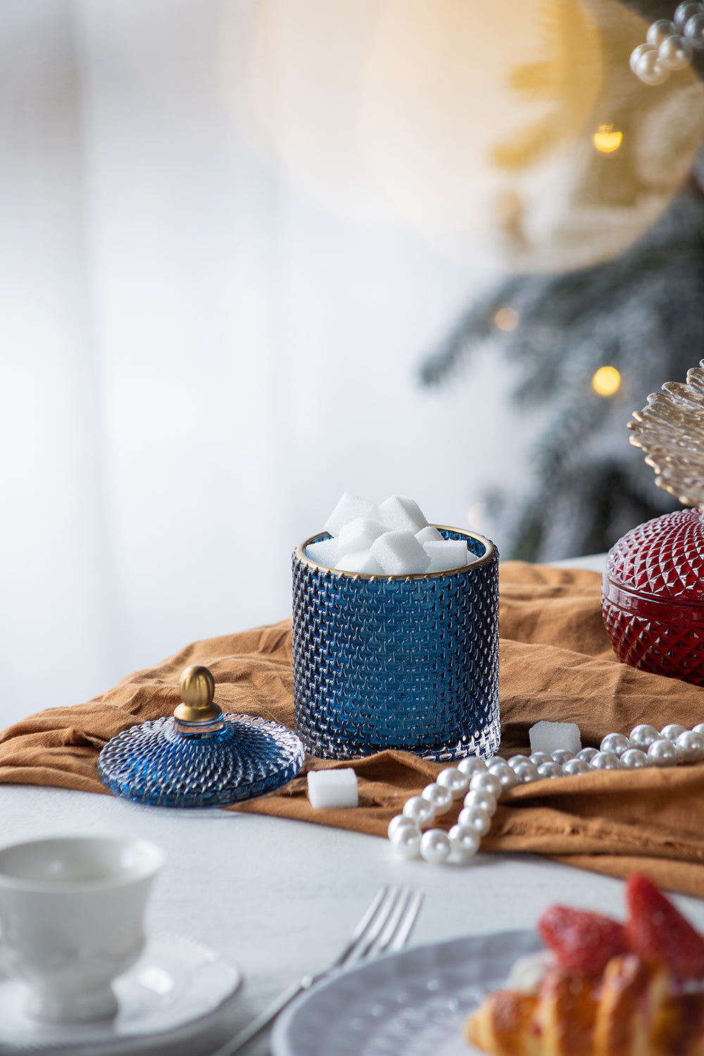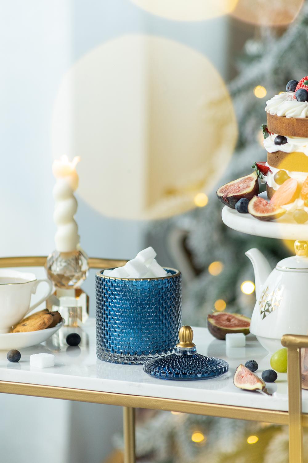 S 2 Glass Candy Jar With Lid, Christmas Candy Jar Containers, Blue Gold Blue Glass
