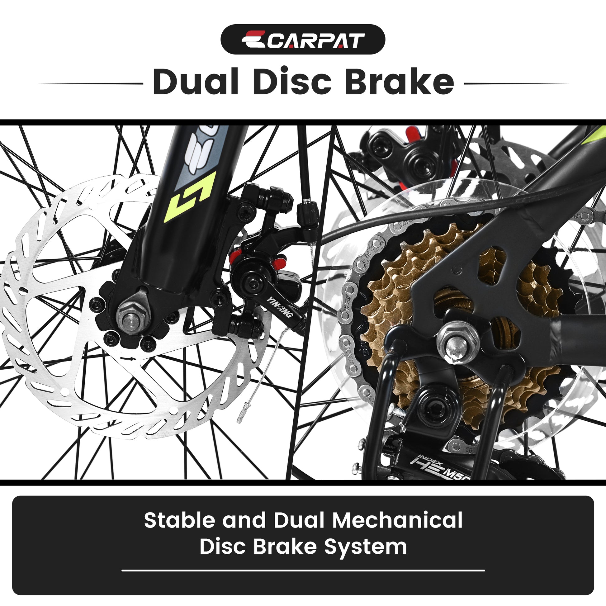 S2410224 Inch Mountain Bike Boys Girls, Steel Frame, Shimano 21 Speed Mountain Bicycle With Daul Disc Brakes And Front Suspension Mtb Green Steel