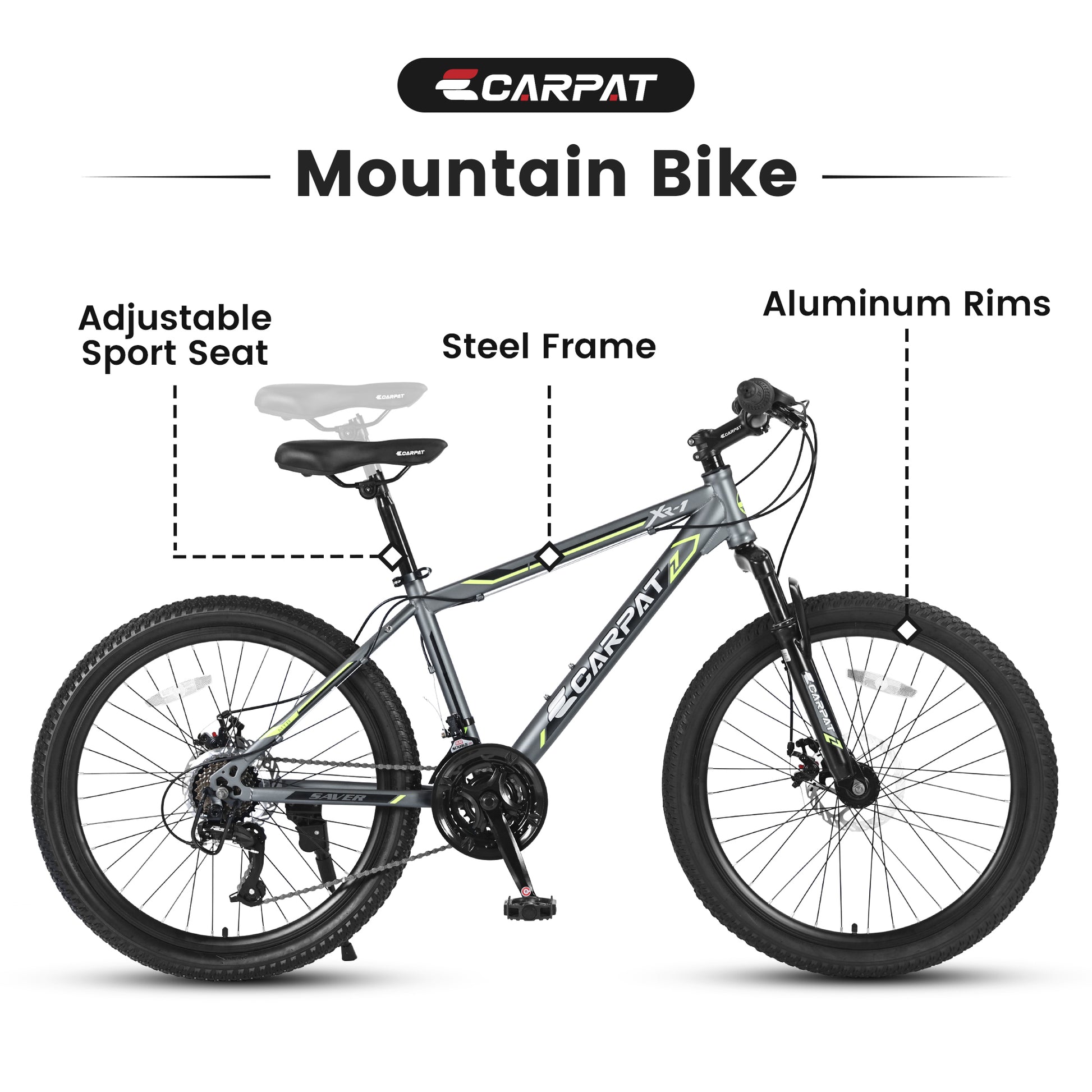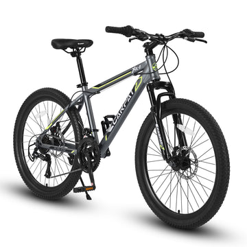 S2410224 Inch Mountain Bike Boys Girls, Steel Frame, Shimano 21 Speed Mountain Bicycle With Daul Disc Brakes And Front Suspension Mtb Grey Steel