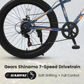 S24109 Elecony 24 Inch Fat Tire Bike Adult Youth Full Shimano 7 Speeds Mountain Bike, Dual Disc Brake, High Carbon Steel Frame, Front Suspension, Mountain Trail Bike, Urban Commuter City Bicycle Cycling Grey Without Anti Slip Garden & Outdoor American