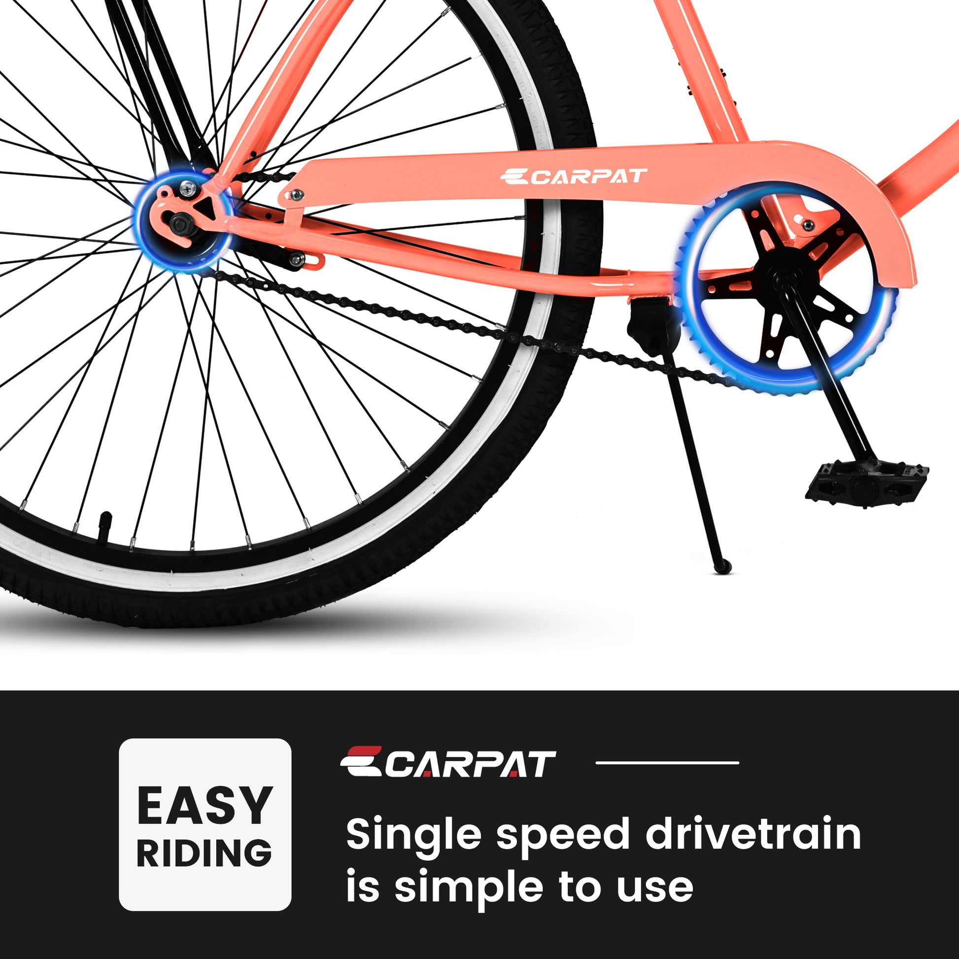 S26204 26 Inch Beach Cruiser Bike For Men And Women, Steel Frame, Single Speed Drivetrain, Upright Comfortable Rides, Multiple Colors Pink Steel
