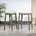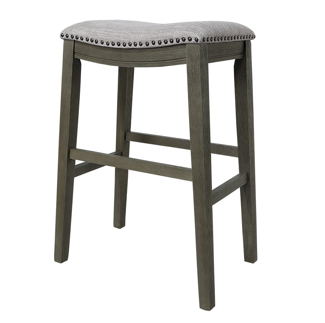 Saddle Stool, 29" Barstool Gray Light Gray Fabric, Set Of 2 Gray Wood
