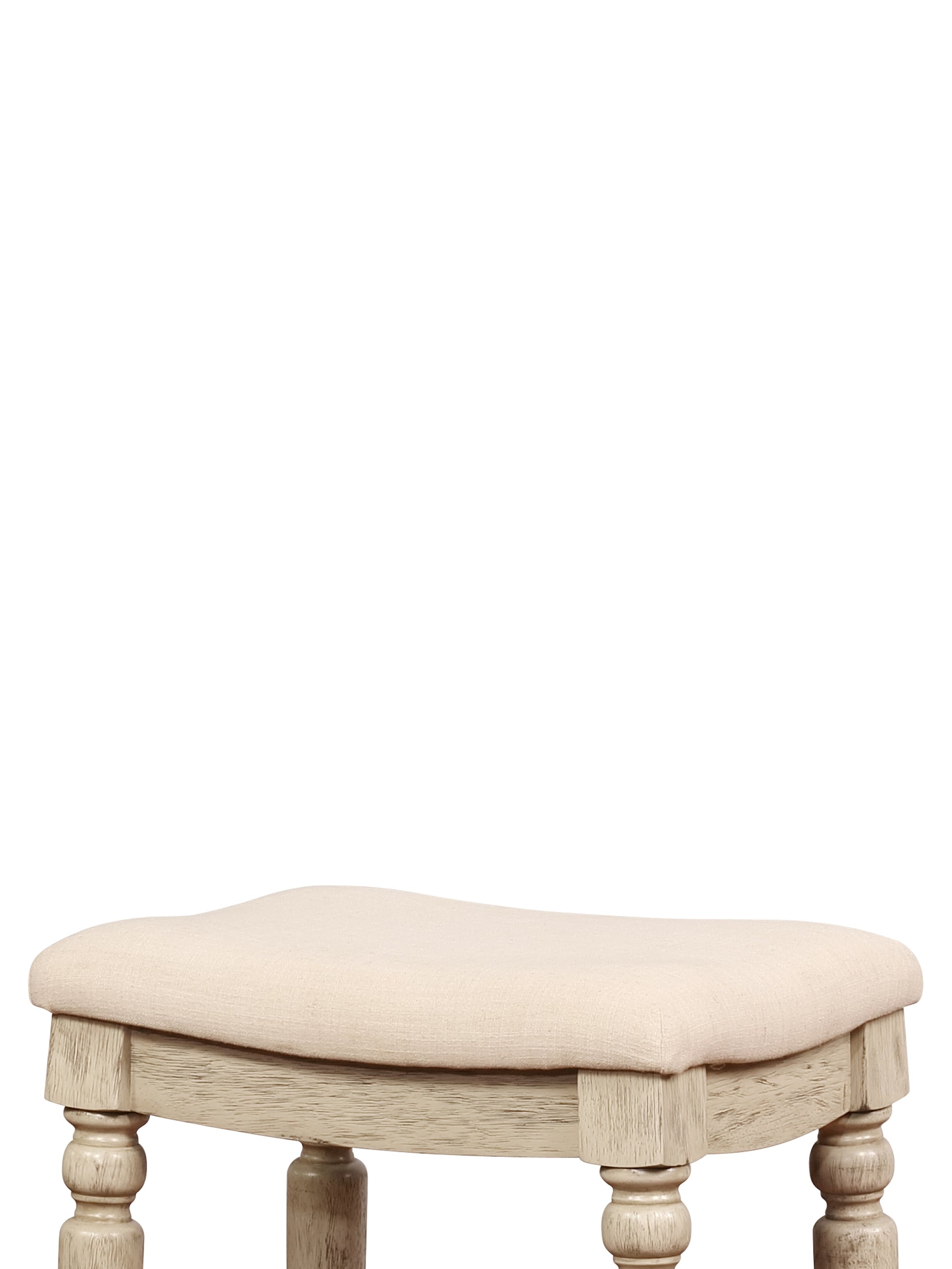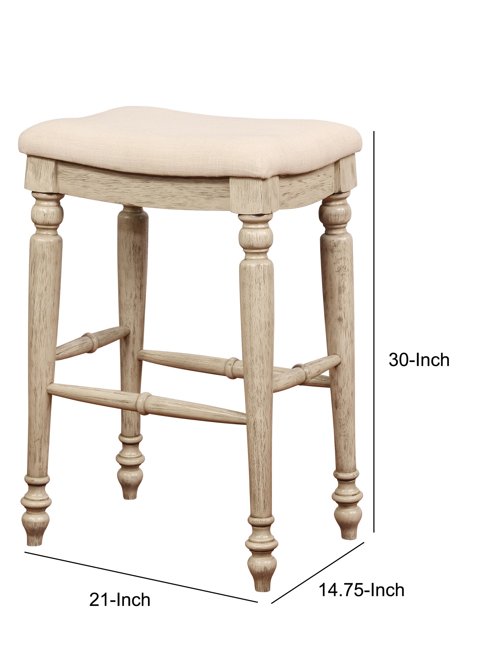 Saddle Top Wooden Bar Stool With Fabric Upholstery,Brown And Beige Beige Brown Wood Fabric