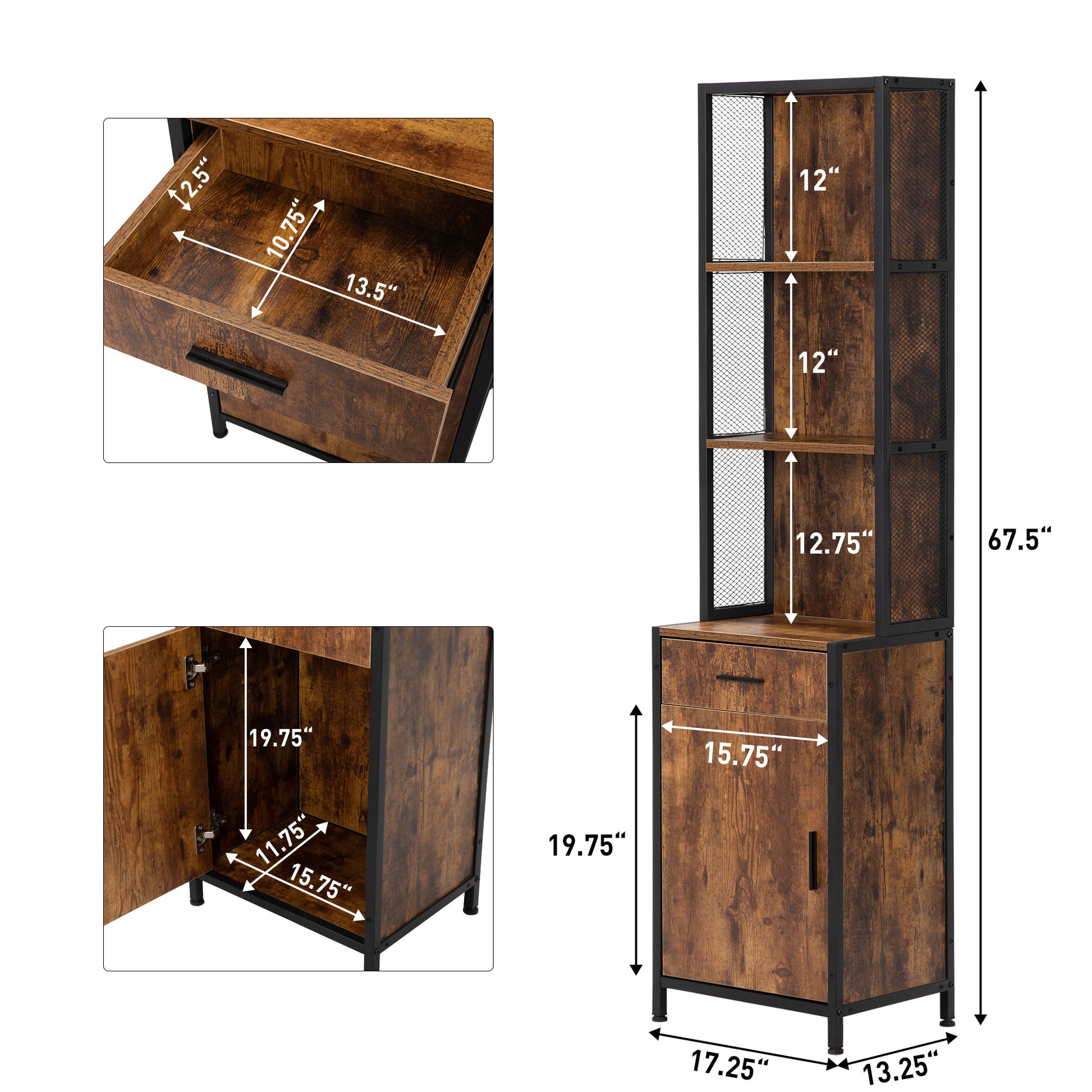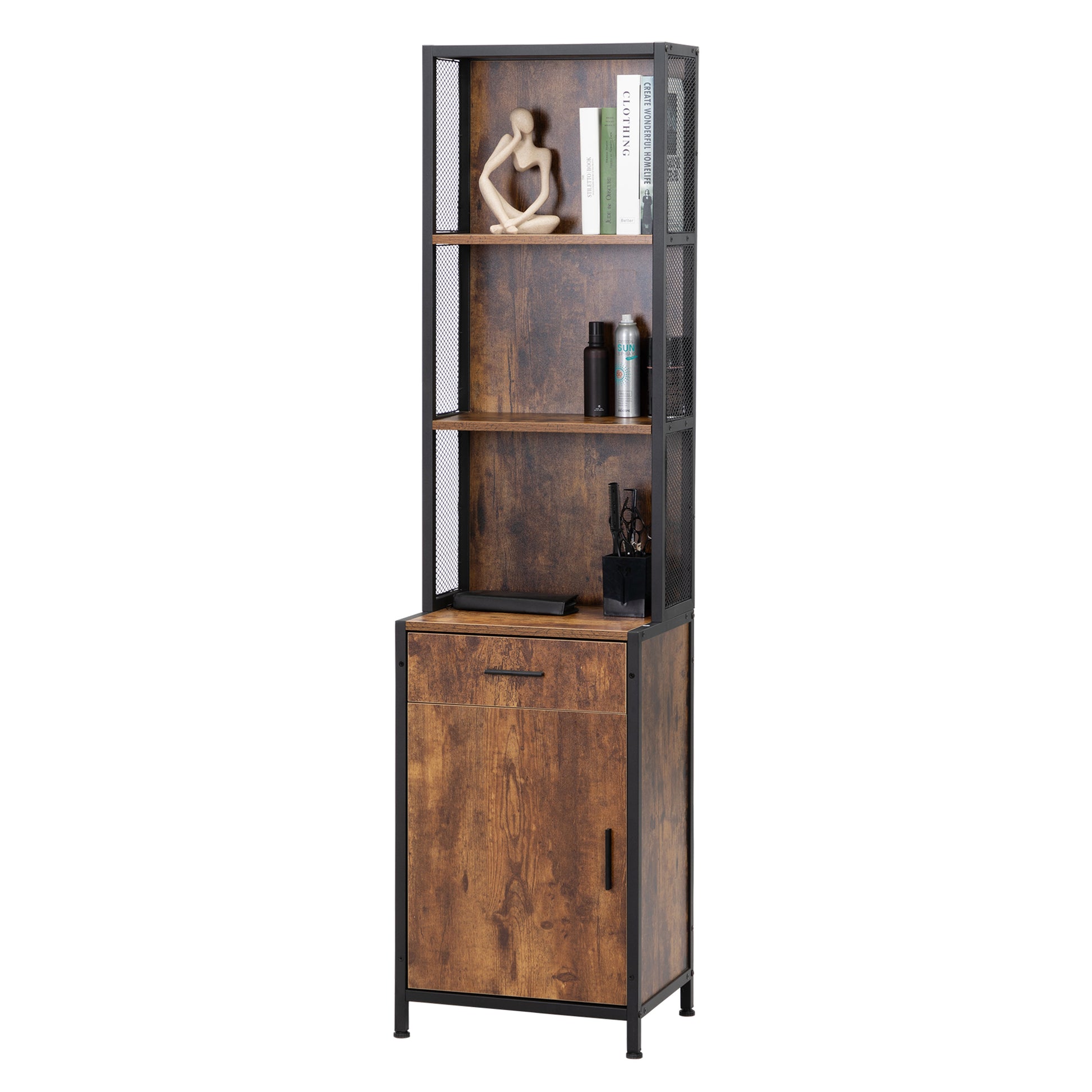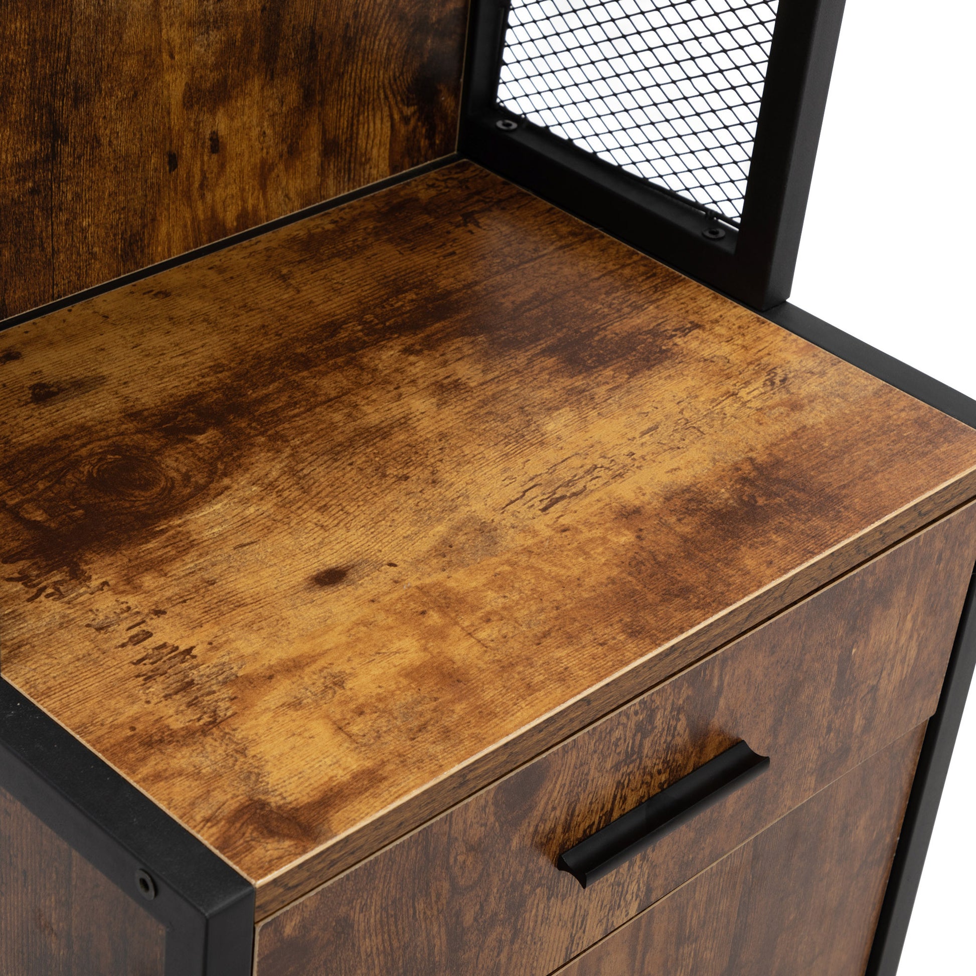 Salon Station For Hair Stylist, Barber Equipment With Drawer, Cabinet And Shelves, Vintage Brown Brown Mdf