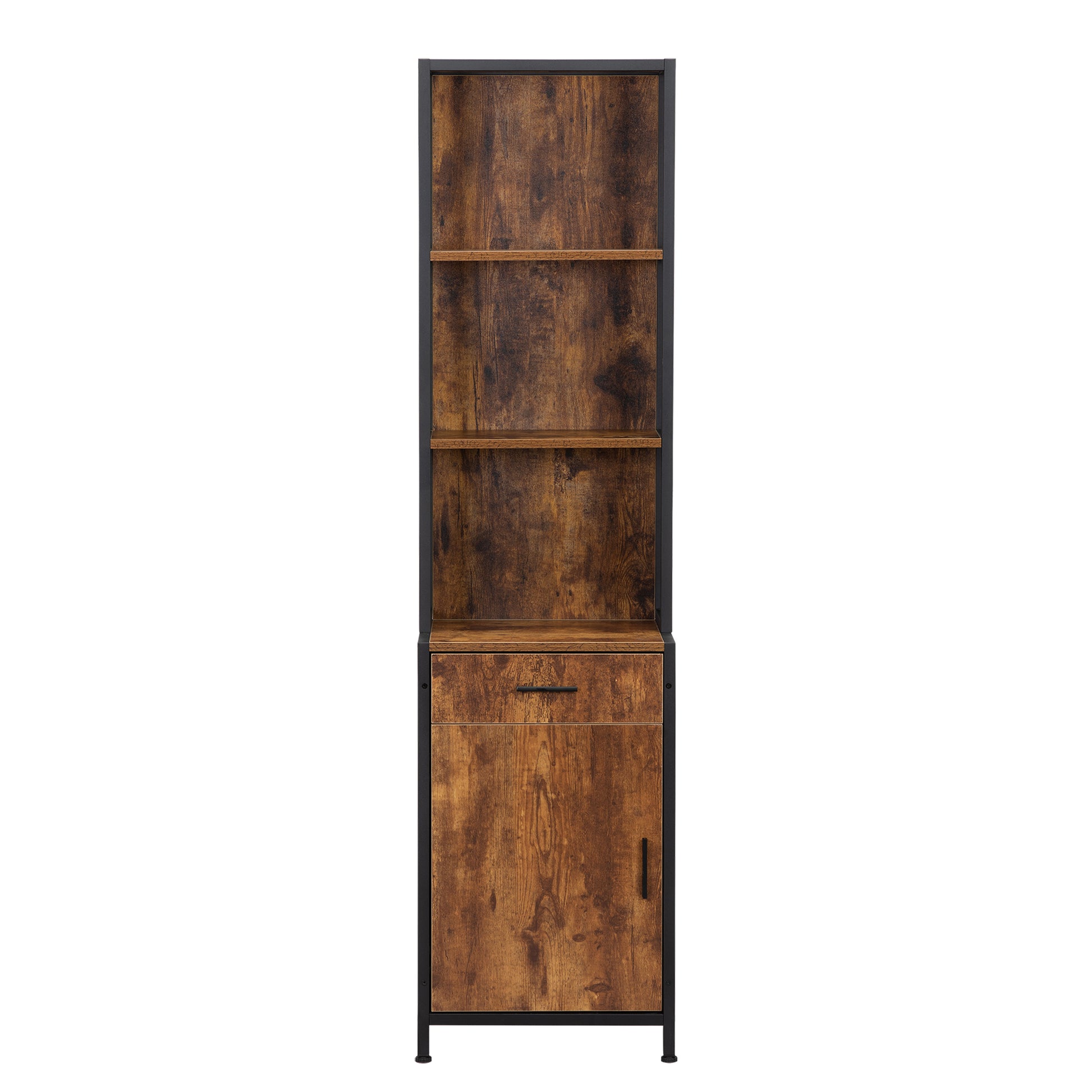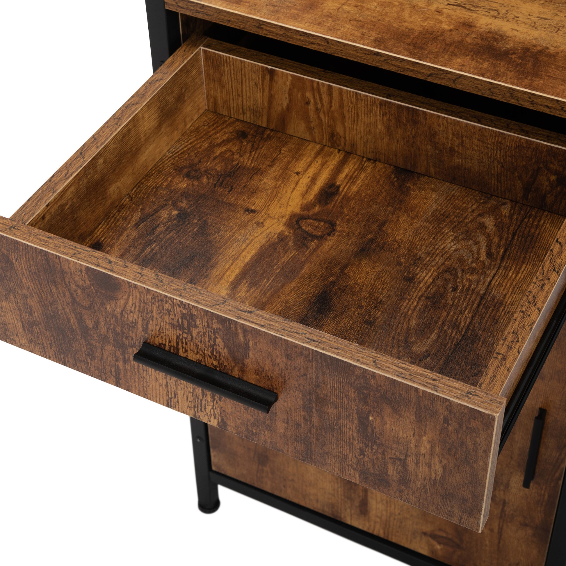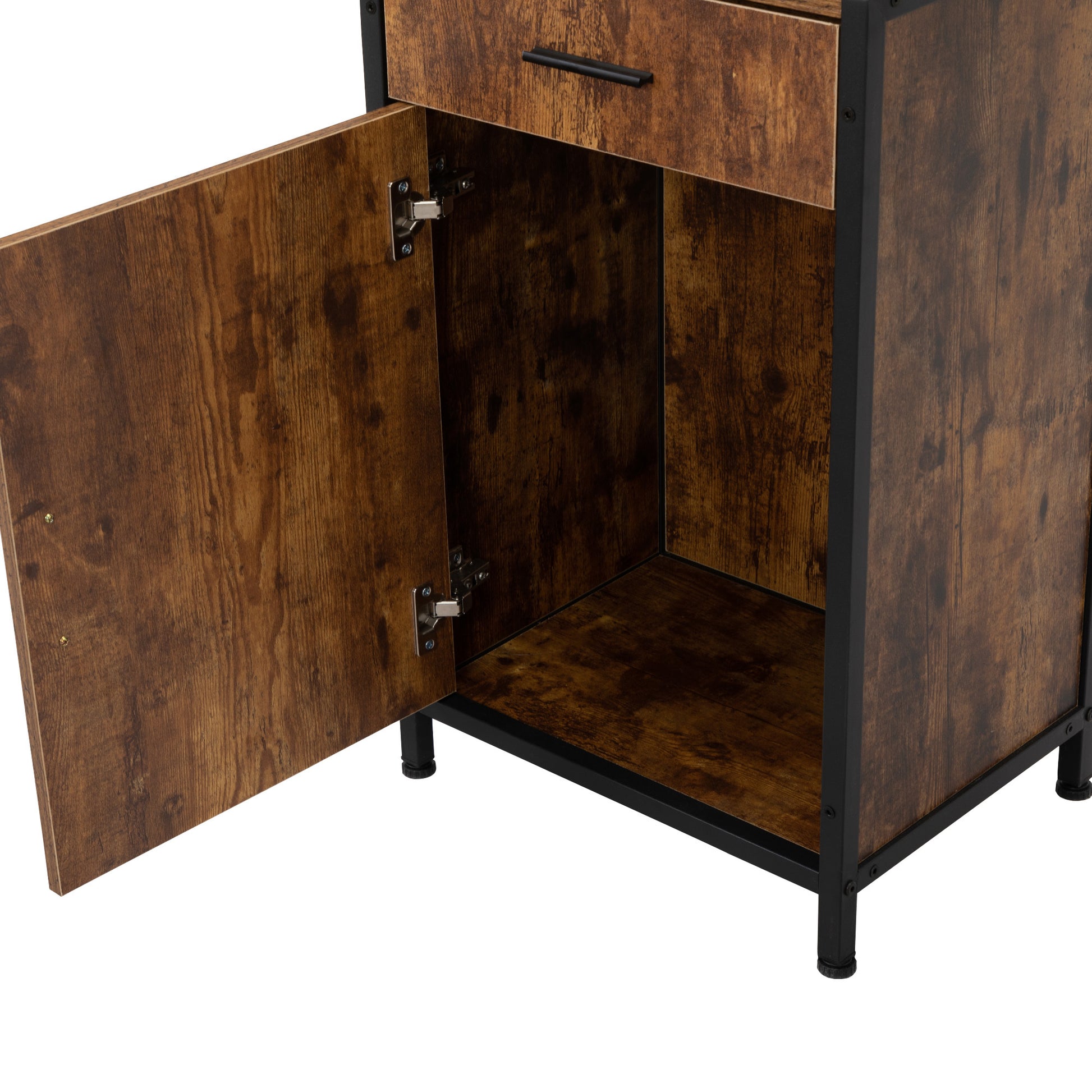 Salon Station For Hair Stylist, Barber Equipment With Drawer, Cabinet And Shelves, Vintage Brown Brown Mdf