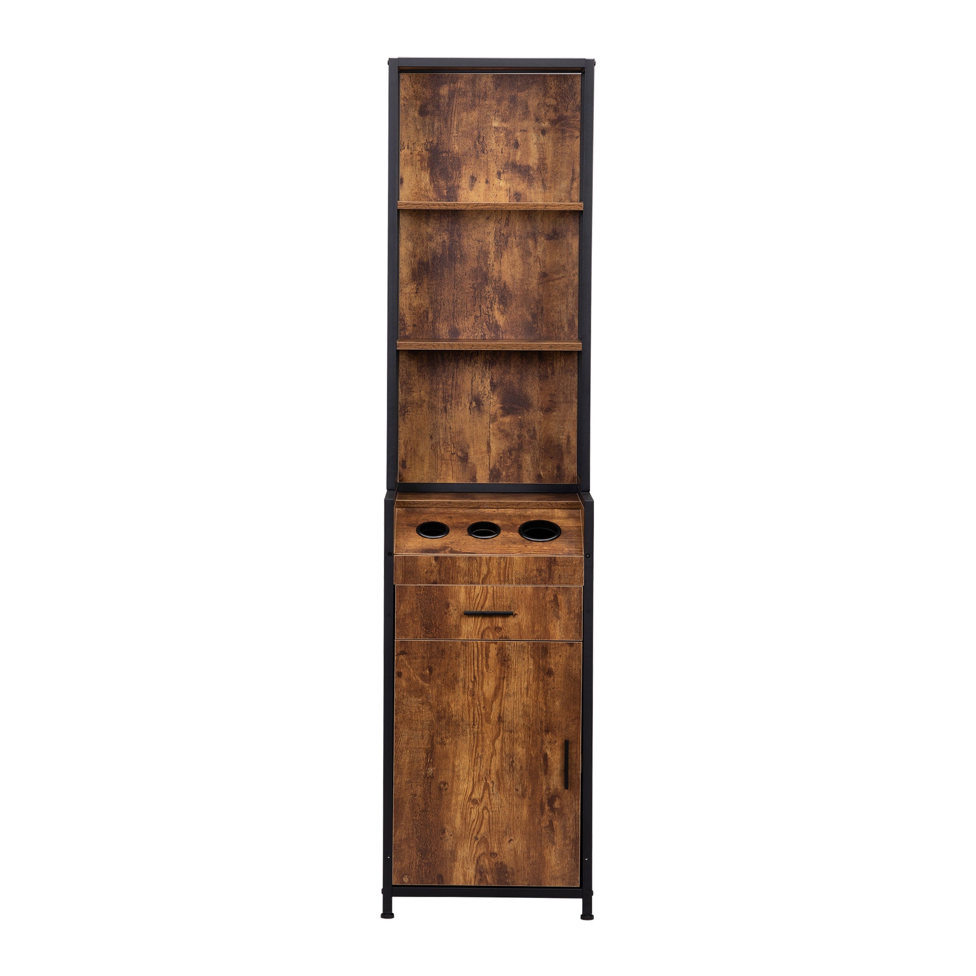 Salon Station For Hair Stylist, Barber Equipment With Drawer, Cabinet, Hair Dryer Holders And Shelves, Vintage Brown Brown Mdf