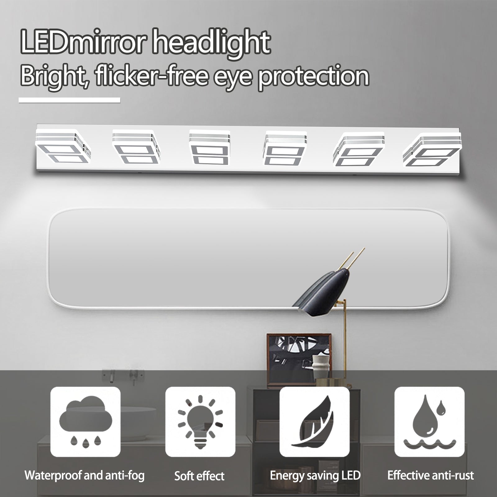 Same As W1340103890 L2007 Led Modern Chrome Makeup Light, 6 Lights Acrylic Chrome Makeup Mirror Light Chrome Acrylic,Stainless Steel