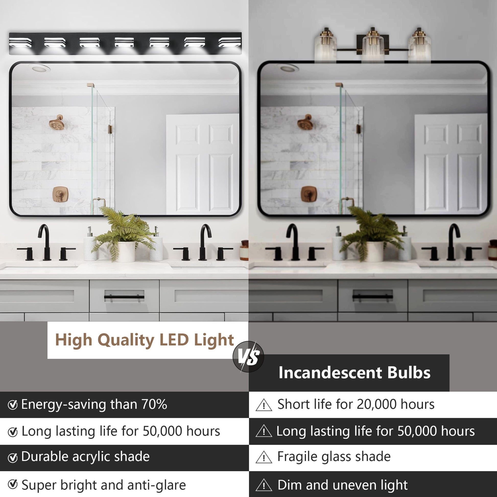 Same As W1340142518 L2005 B 7 Led Modern Black Vanity Lights, 7 Lights Acrylic Matte Black Bathroom Vanity Lights Over Mirror Black Acrylic,Iron