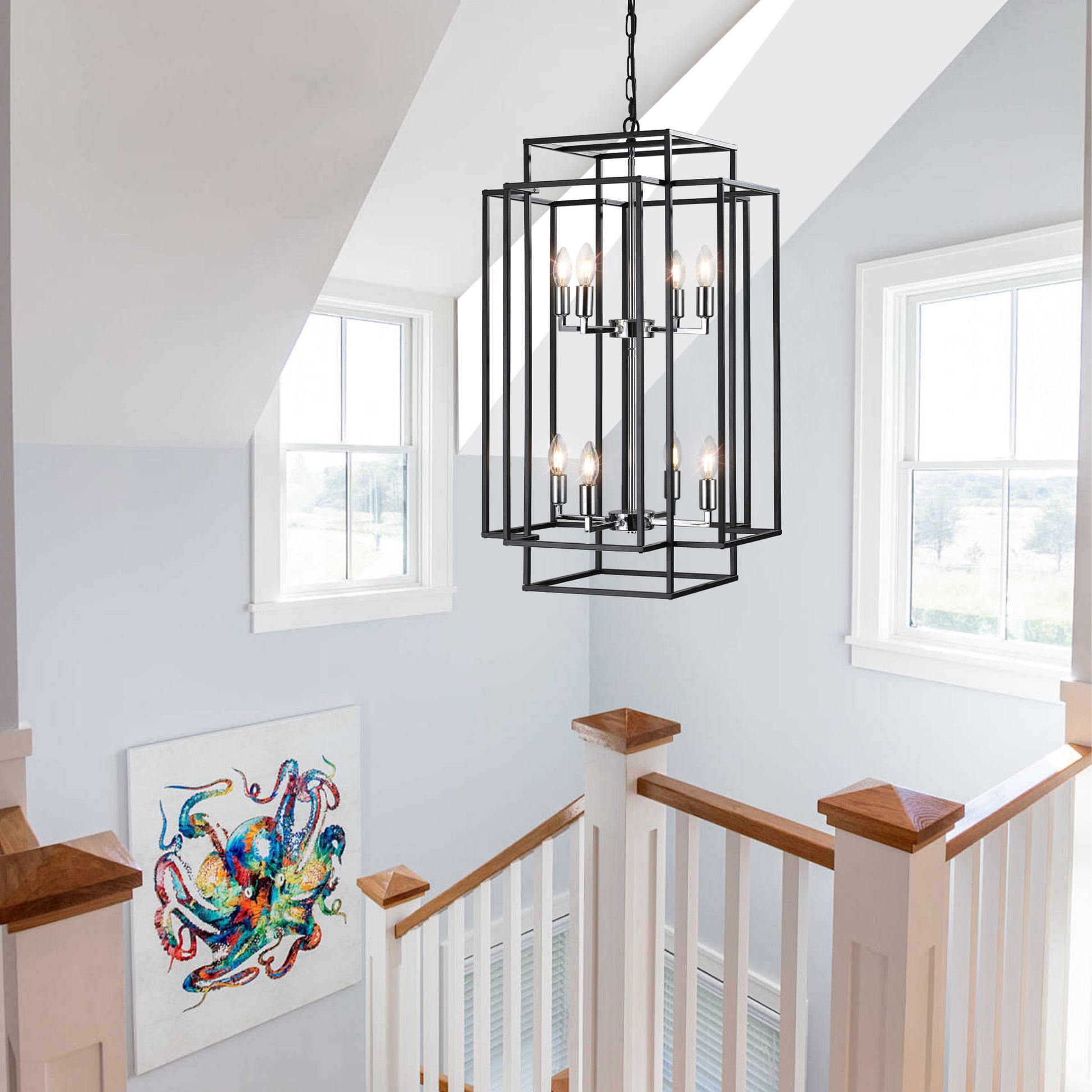 Same As W1340142527 L1018 B 8 Lights Black Lantern Tiered Pendant Light Fixtures, Industrial Farmhouse Hanging Chandelier No Bulbs Black Farmhouse Iron