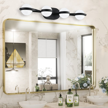 Same As W1340P143677 L2001 B 4 Modern Minimalist Bathroom Vanity Light, Led 4 Bulb Frosted Glass Shades, Wall Mounted Decorative Lighting Fixture, Suitable For Bathroom Vanity Mirror Black Black