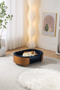 Scandinavian Style Elevated Dog Bed Pet Sofa With Solid Wood Legs And Walnut Bent Wood Back, Cashmere Cushion,Mid Size Dark Blue Foam Solid Wood
