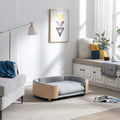 Scandinavian Style Elevated Dog Bed Pet Sofa With Solid Wood Legs And Bent Wood Back, Velvet Cushion,Large Size Light Grey Foam Solid Wood