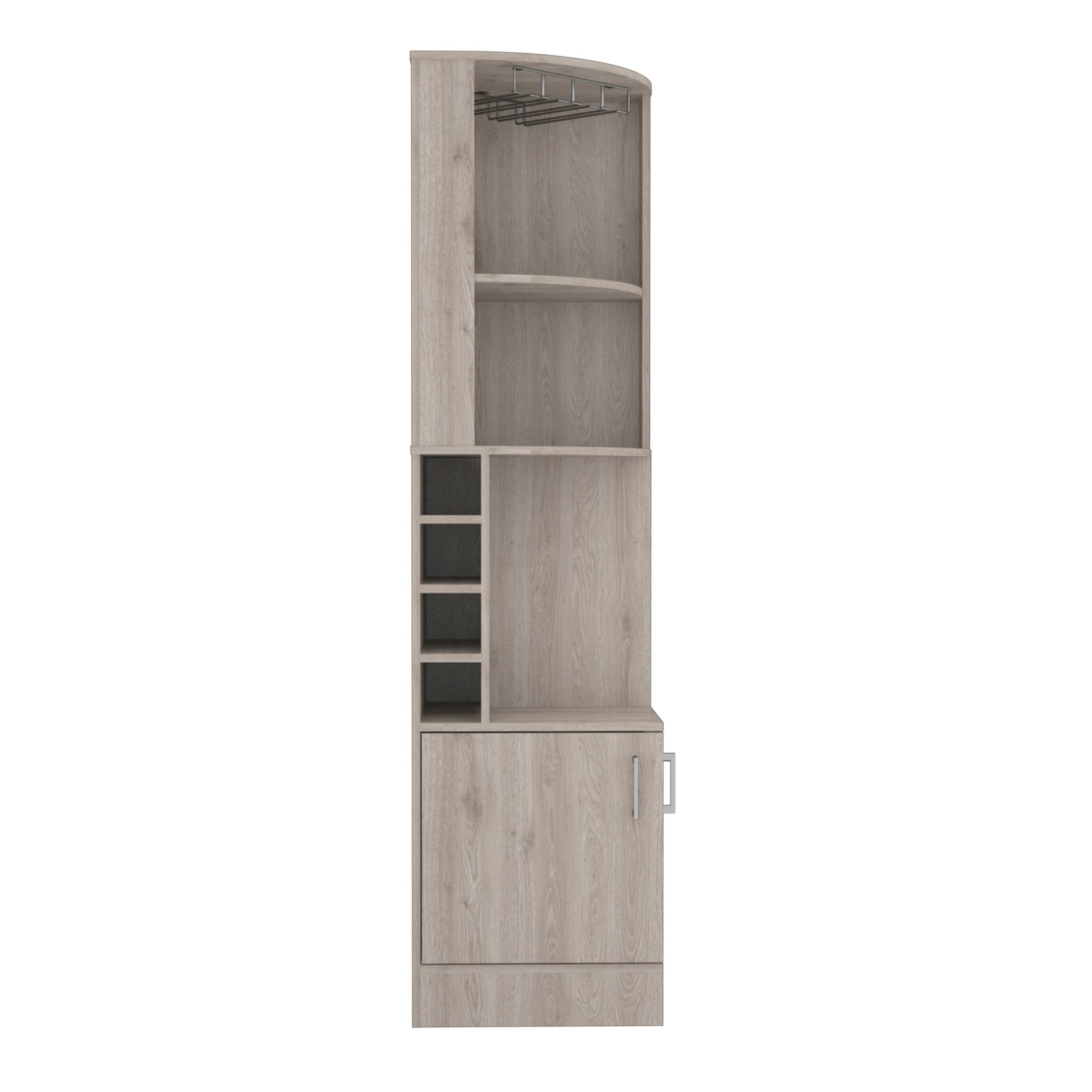 Seattle Bar Cabinet, Eight Bottle Cubbies, Two Large Open Shelves Light Gray Particle Board Engineered Wood
