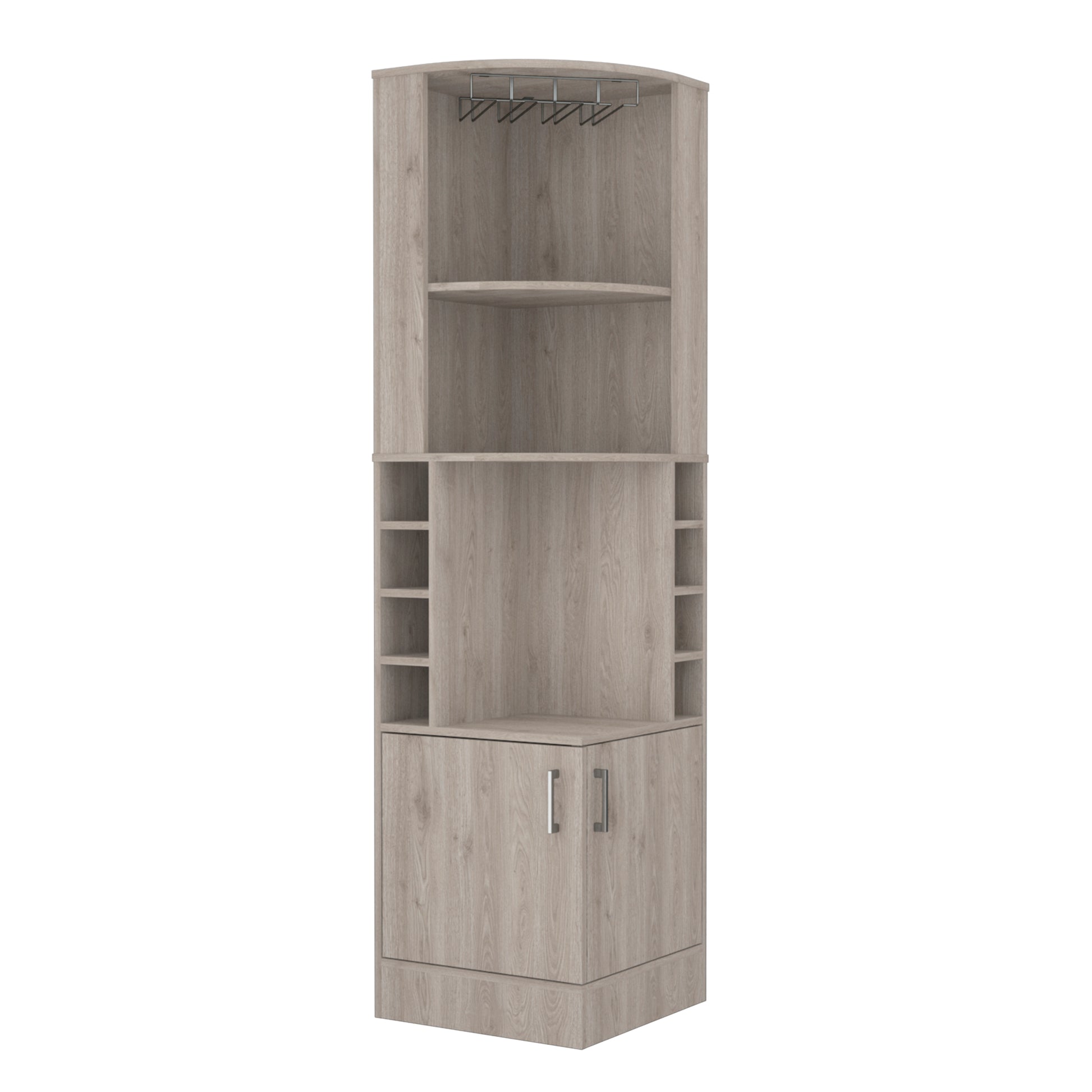 Seattle Bar Cabinet, Eight Bottle Cubbies, Two Large Open Shelves Light Gray Particle Board Engineered Wood