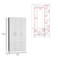 Sebree 71" High Armoire Wardrove Closet With 2 Drawers, Four Doorsthree Cabinetsix Shelves And Hanging Rod, Bedroom Clothes Storage Cabinet Organizer White Bedroom Modern Particle Board